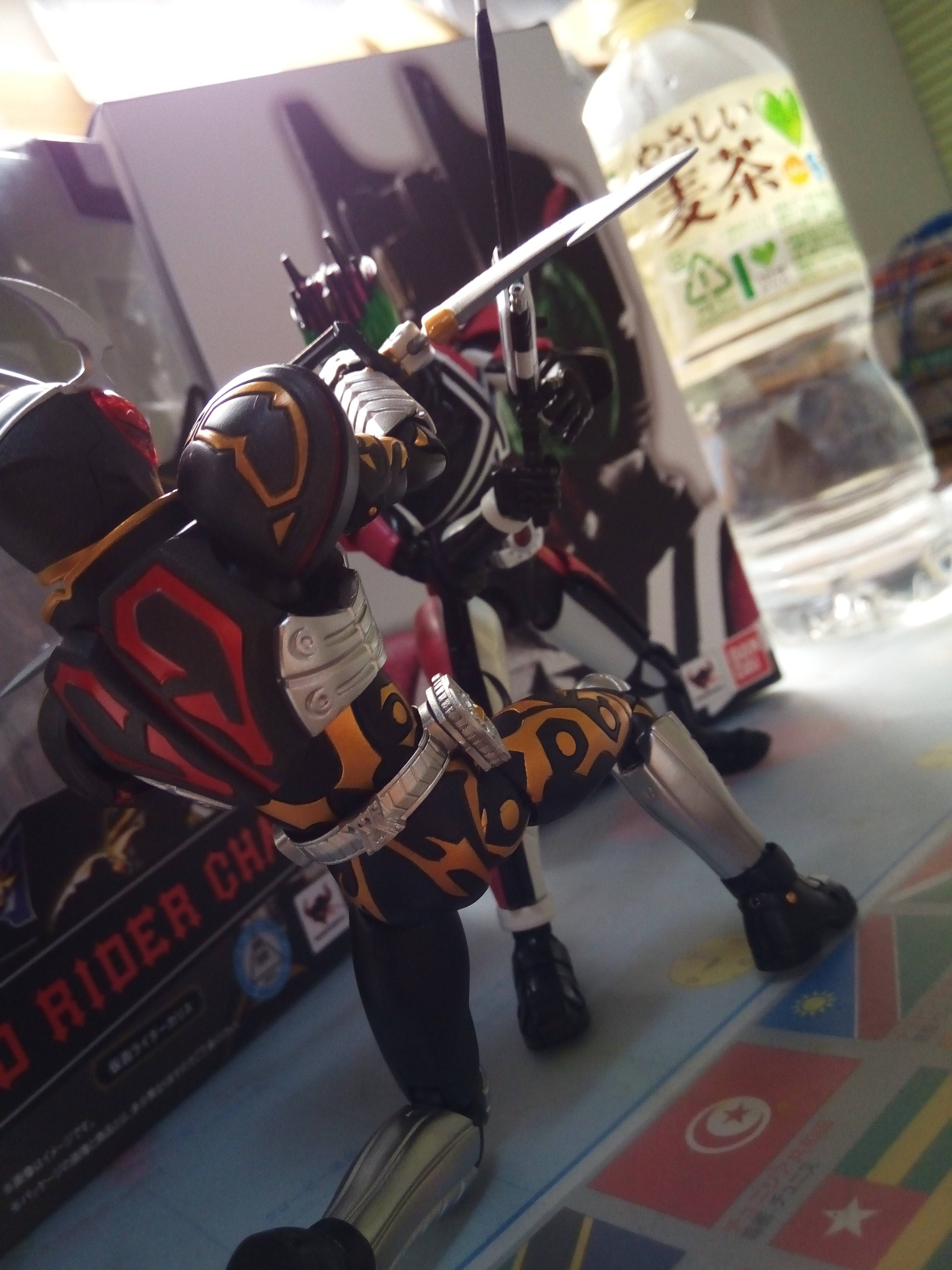迫力を出すなら左のライダーの後ろからディケイドを撮る感じ日てみては?