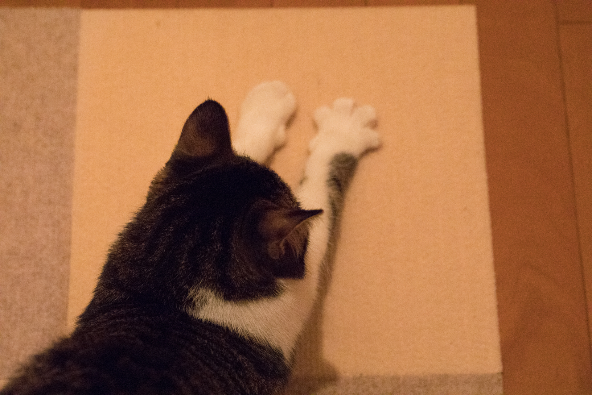 しのぶ♀。寒くなってきたにもかかわらず湯たんぽやホットカーペットには目もくれない。