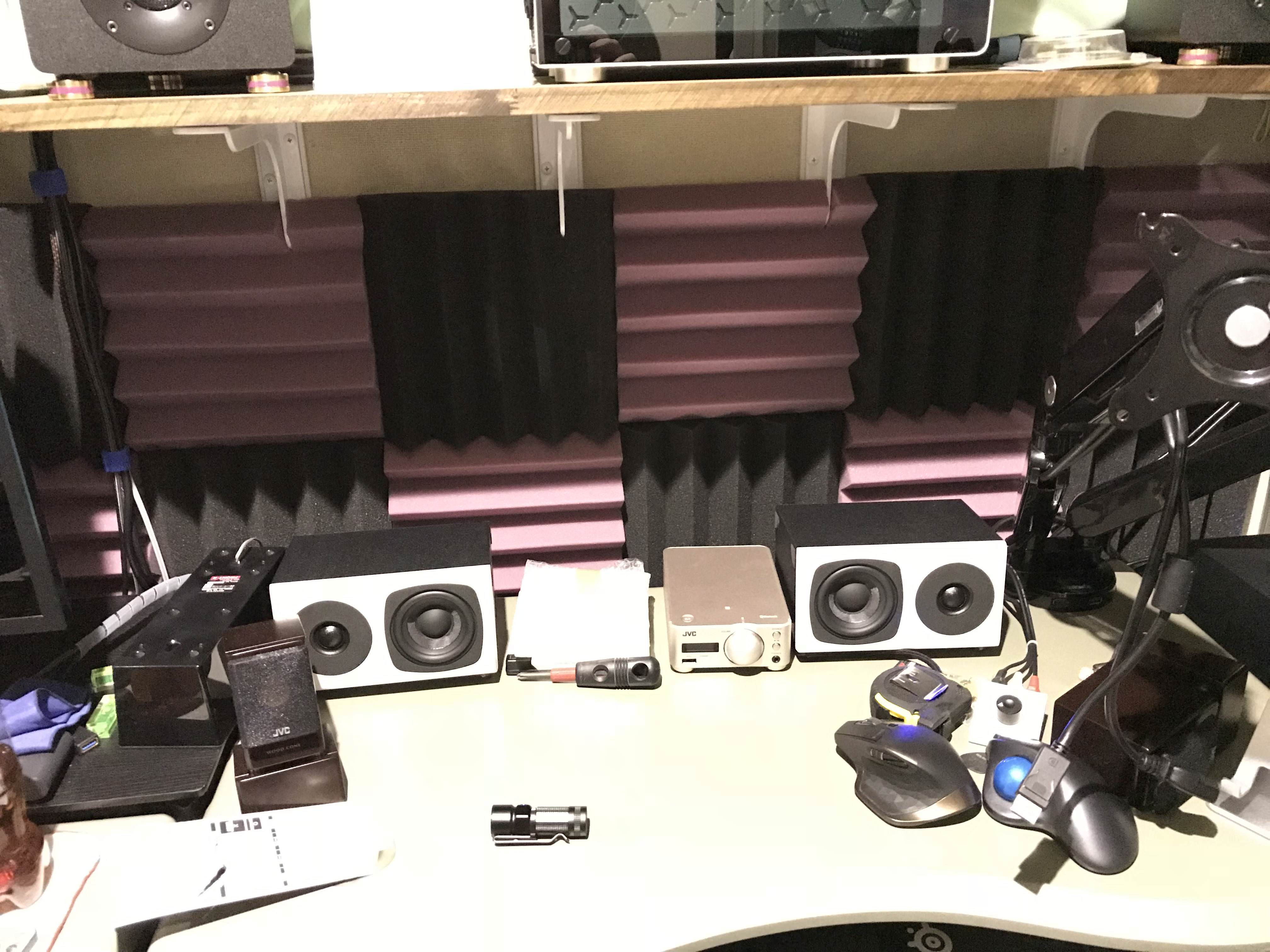PCスピーカーを一新したのですが、構造的にモニター裏で変に音が反響するので吸音材を貼り付けてみました