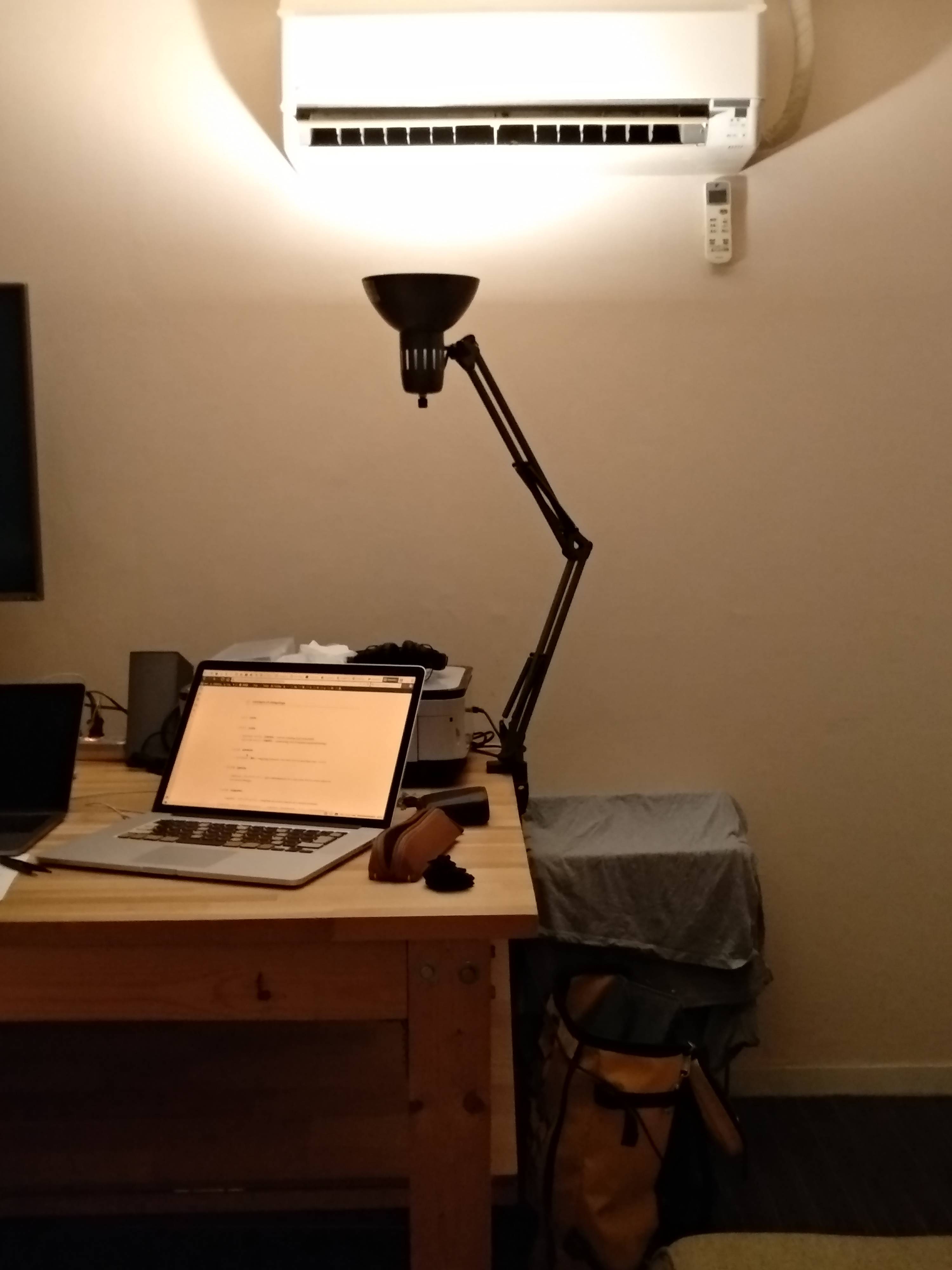 机とカーテンと壁が似たような色だから閉鎖感出るんだよ