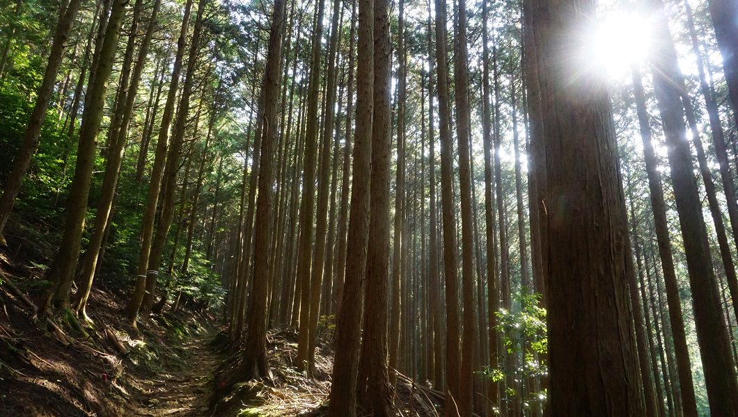 手入れのされた杉林は太陽の光が入って美しい