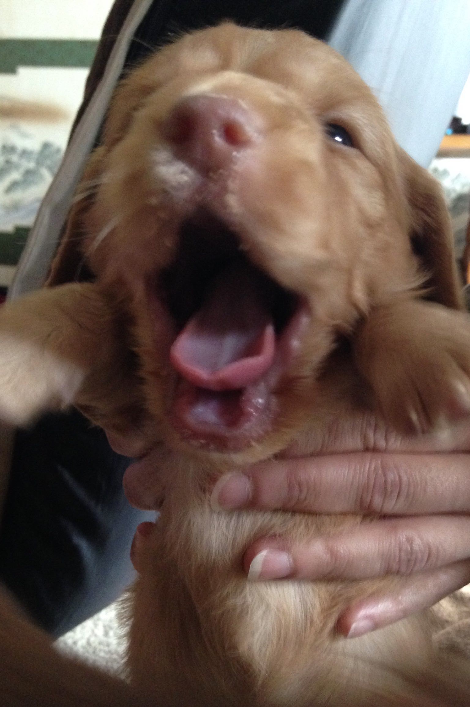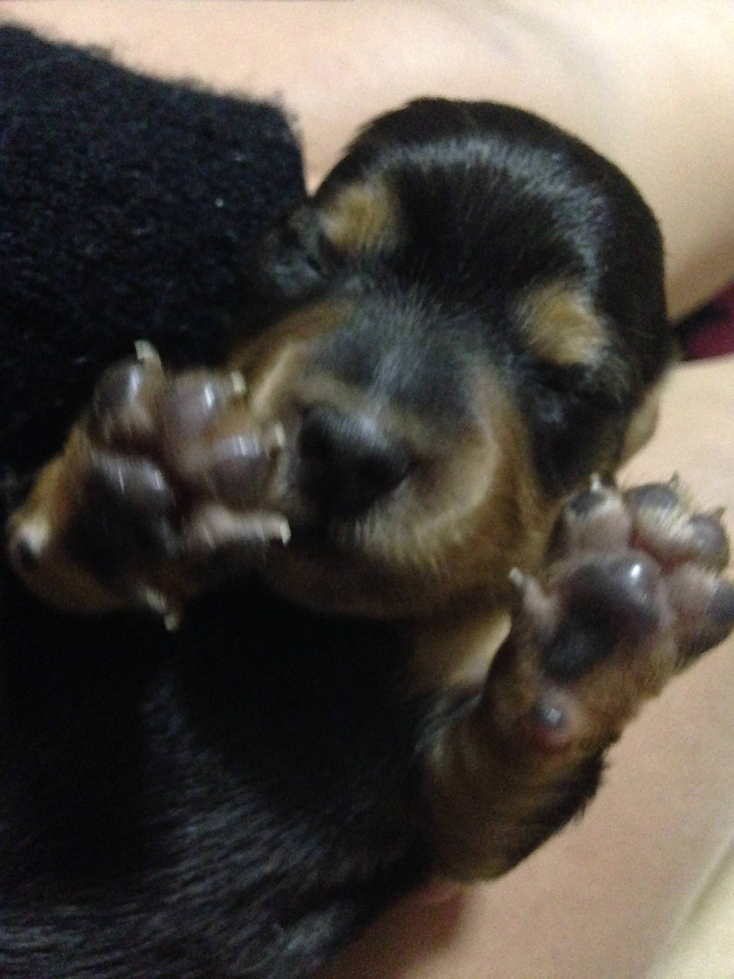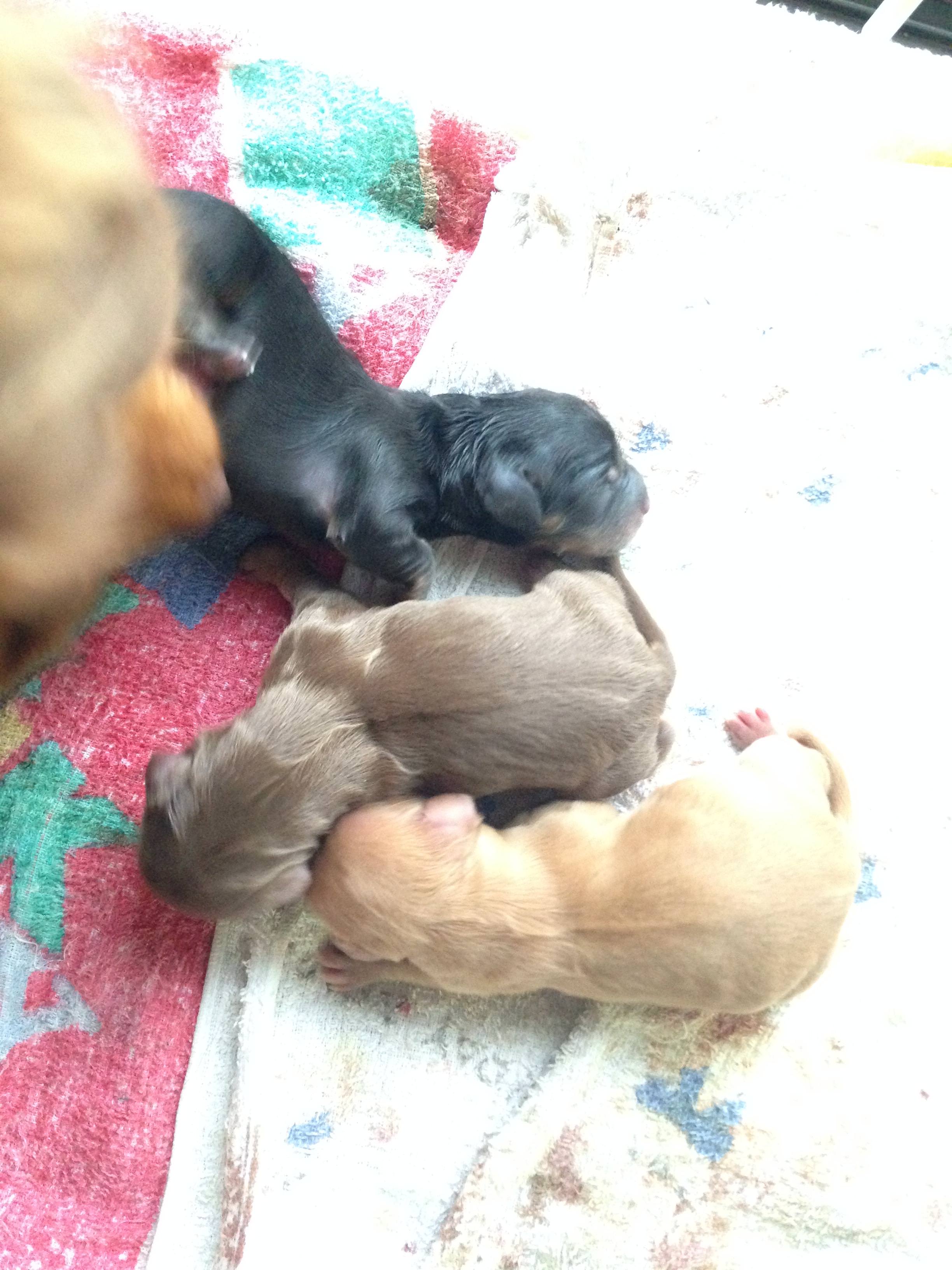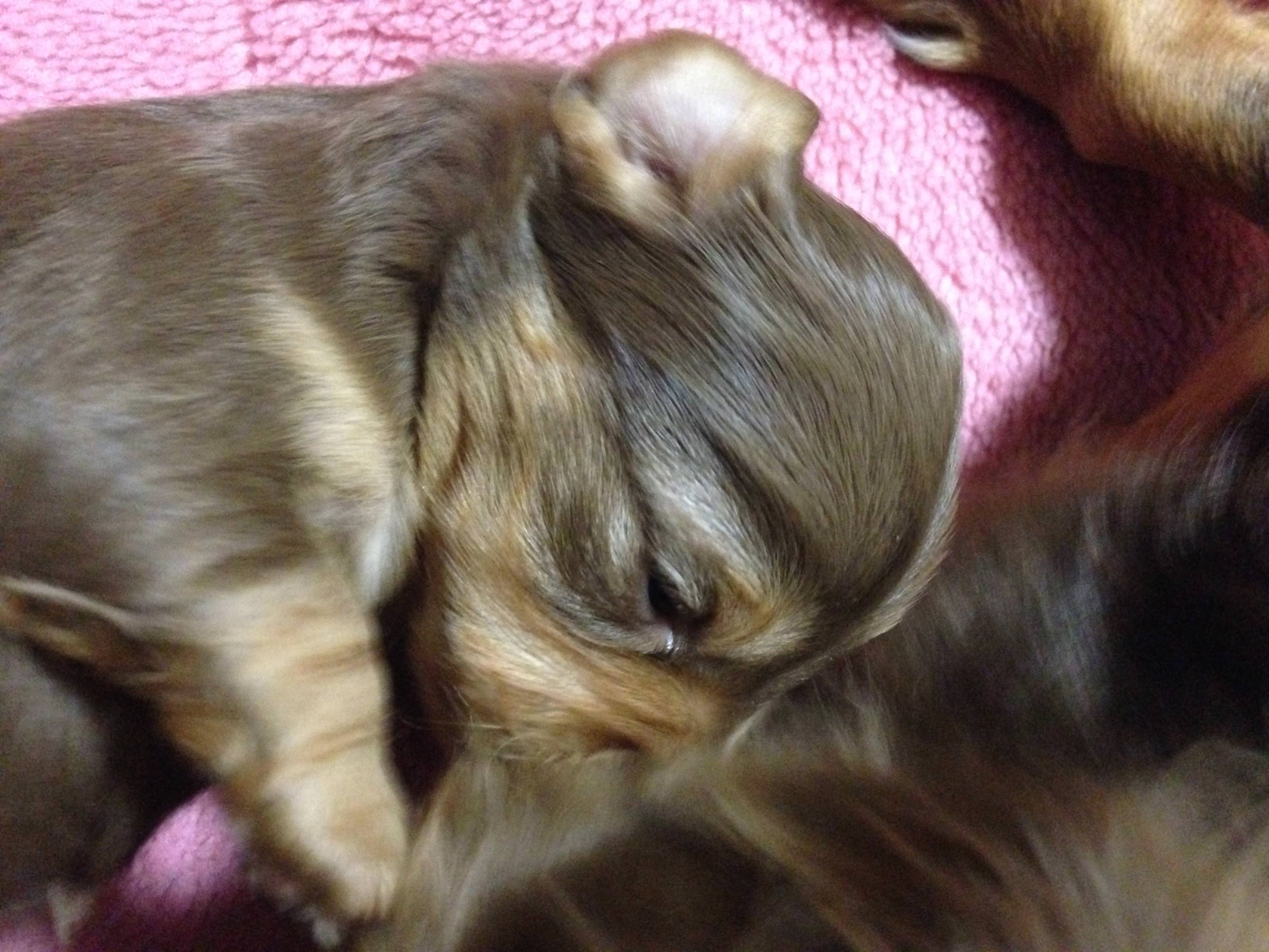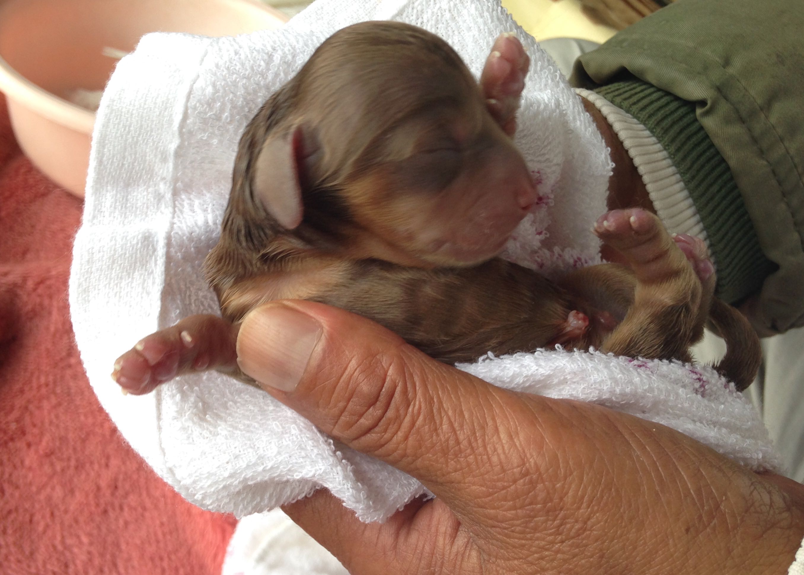 産まれて来てるのに、子犬たちをお腹で守りながら