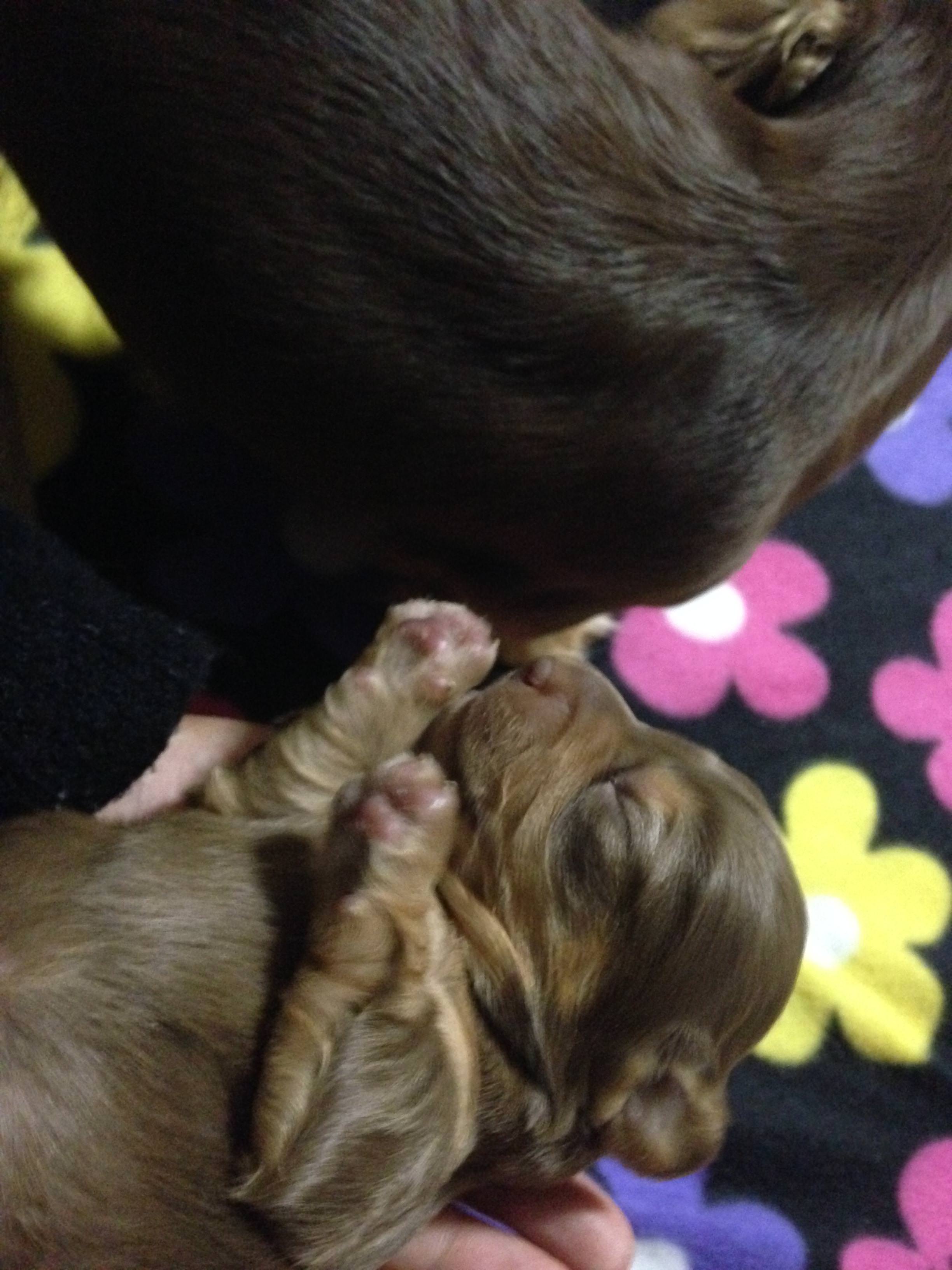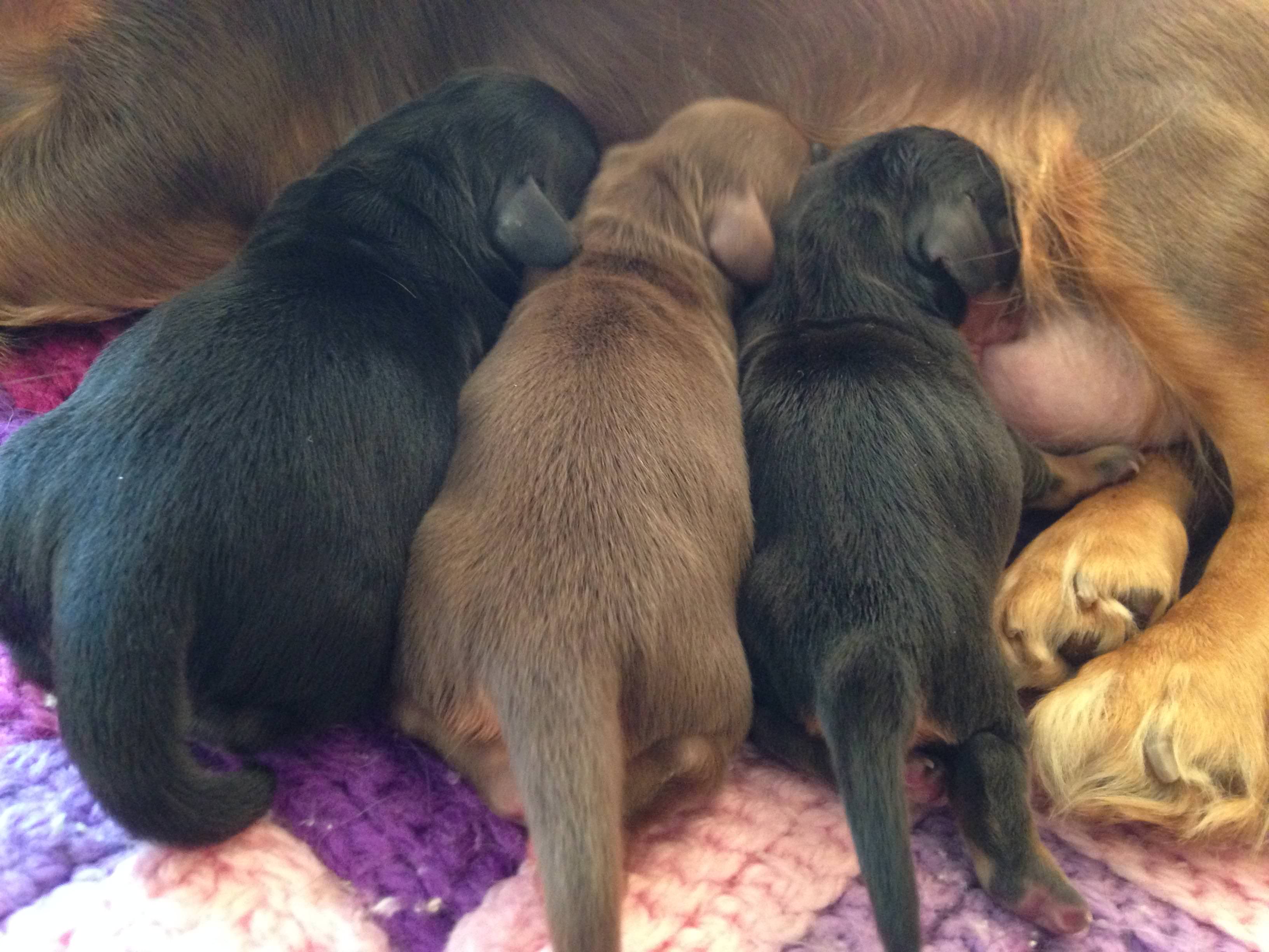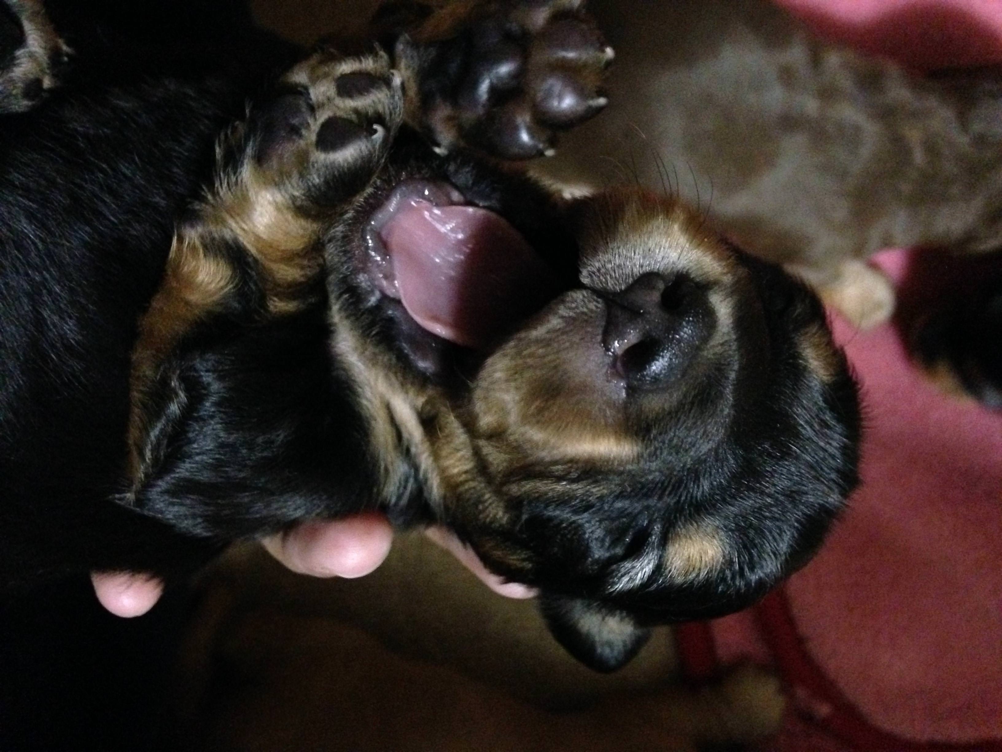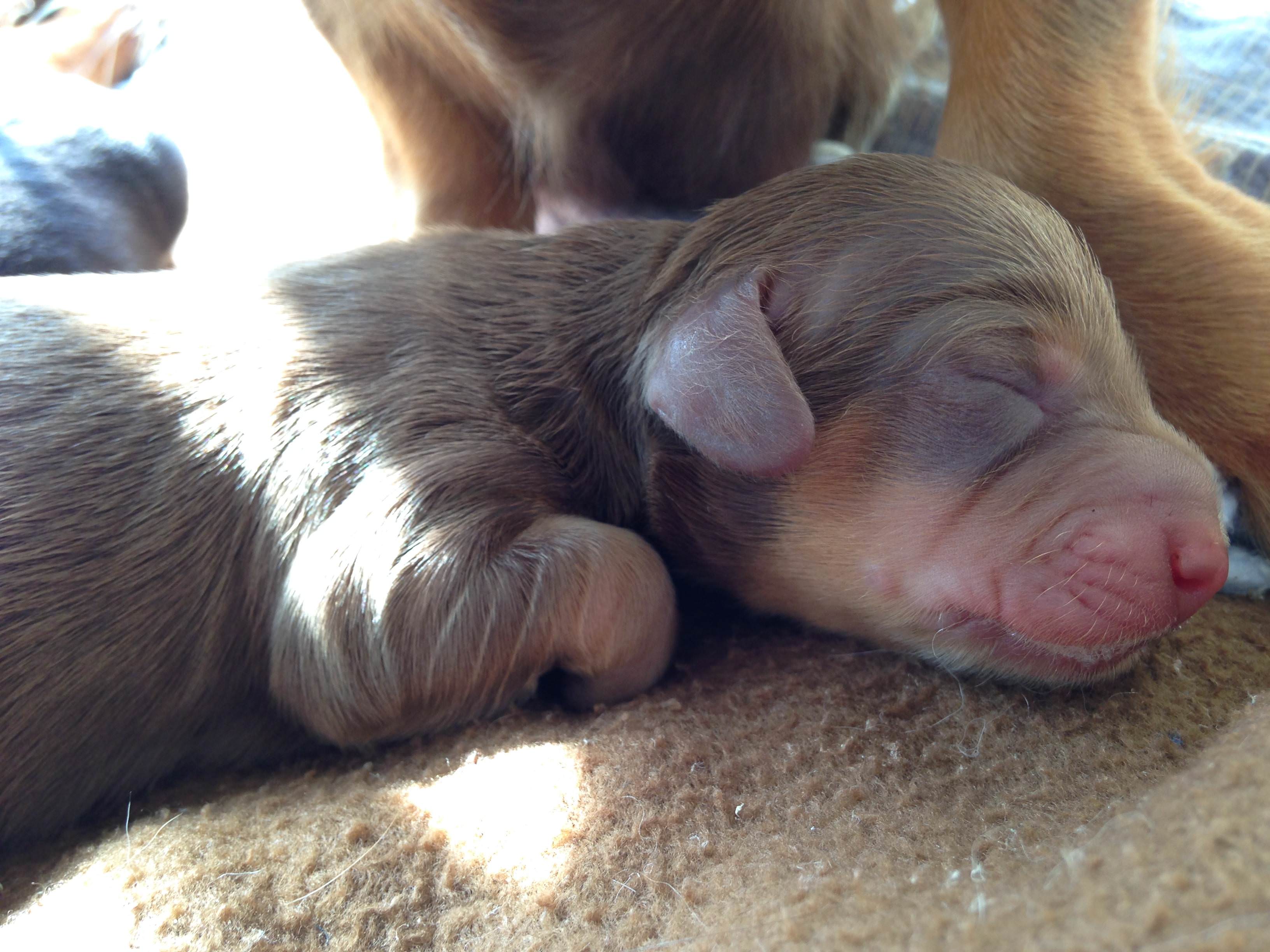 産まれて来てるのに、子犬たちをお腹で守りながら