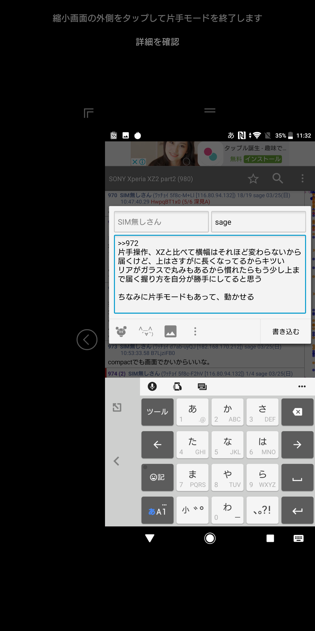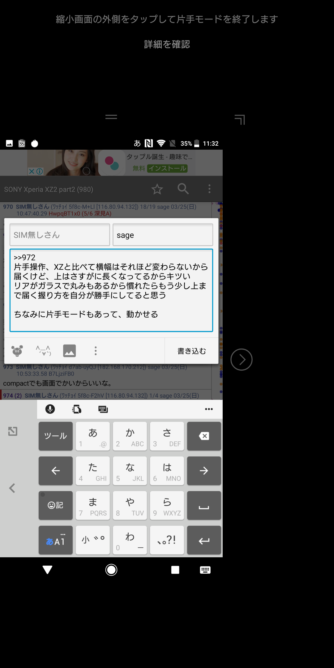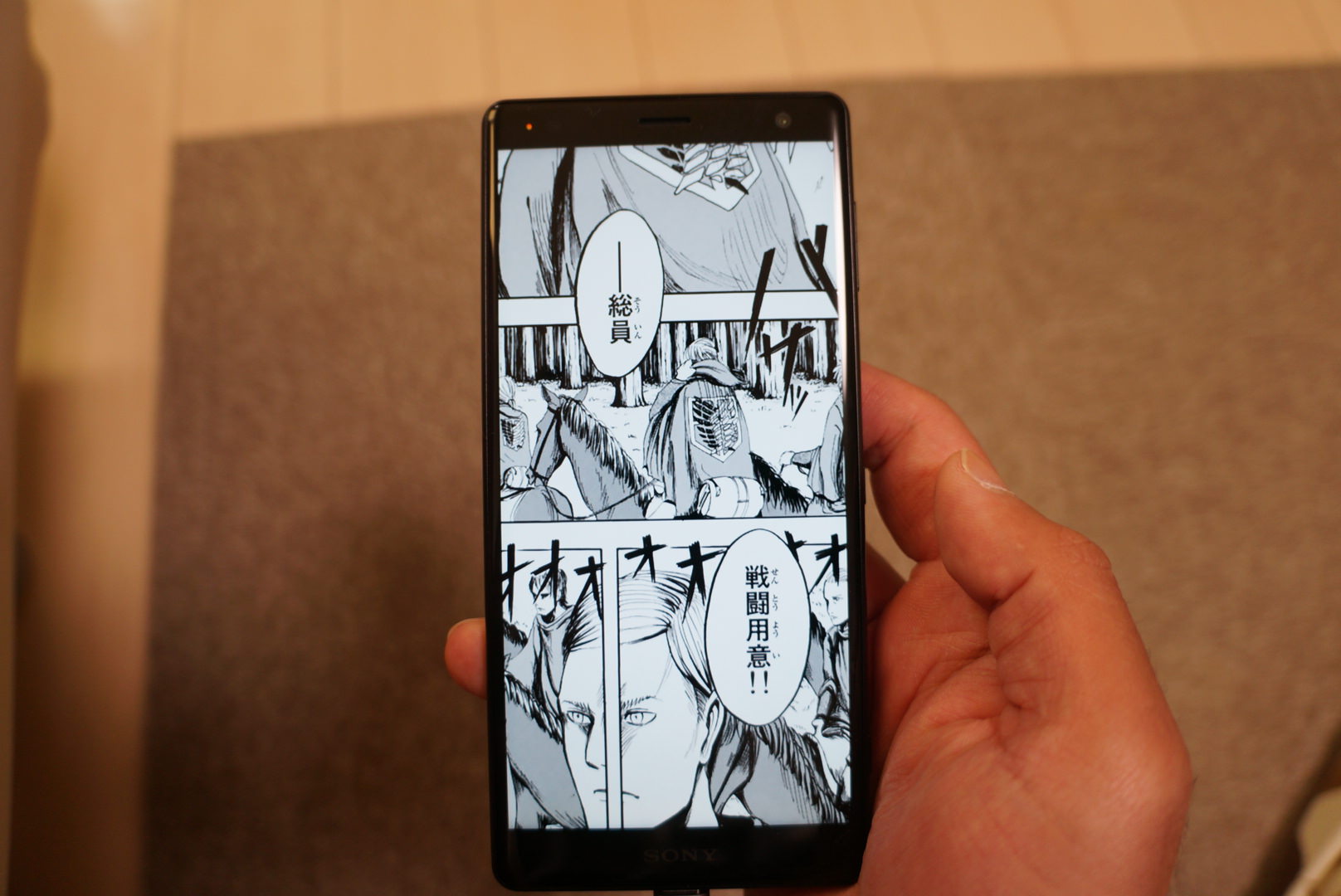 片手操作、XZと比べて横幅はそれほど変わらないから届くけど、上はさすがに長くなってるからキツい