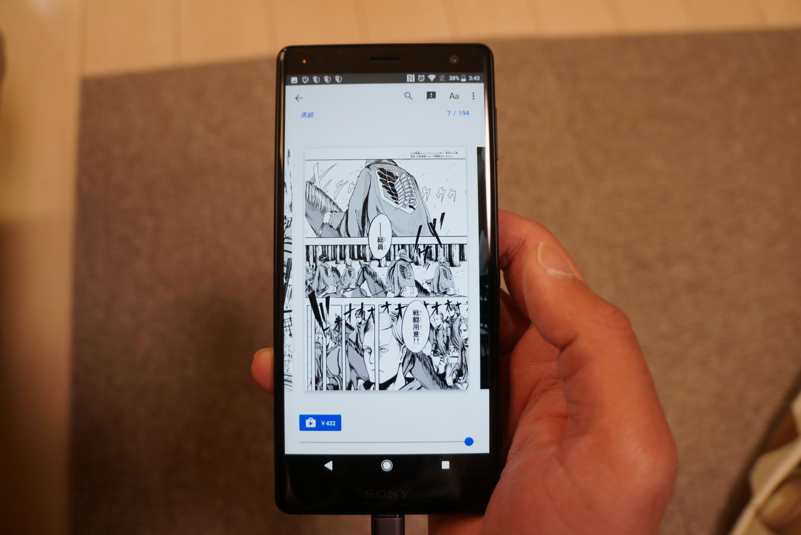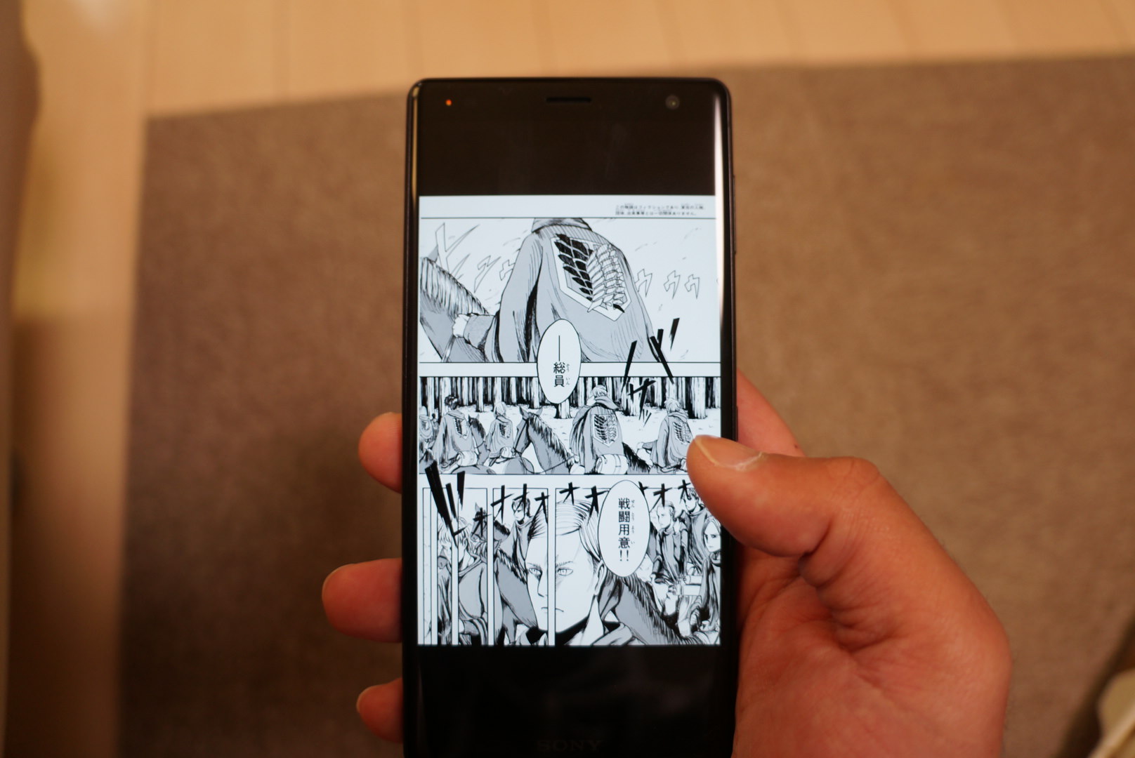 Kindleとか電子書籍リーダーアプリ使ってたらで良いんで、漫画表示させた状態の写真撮ってもらえないですかね