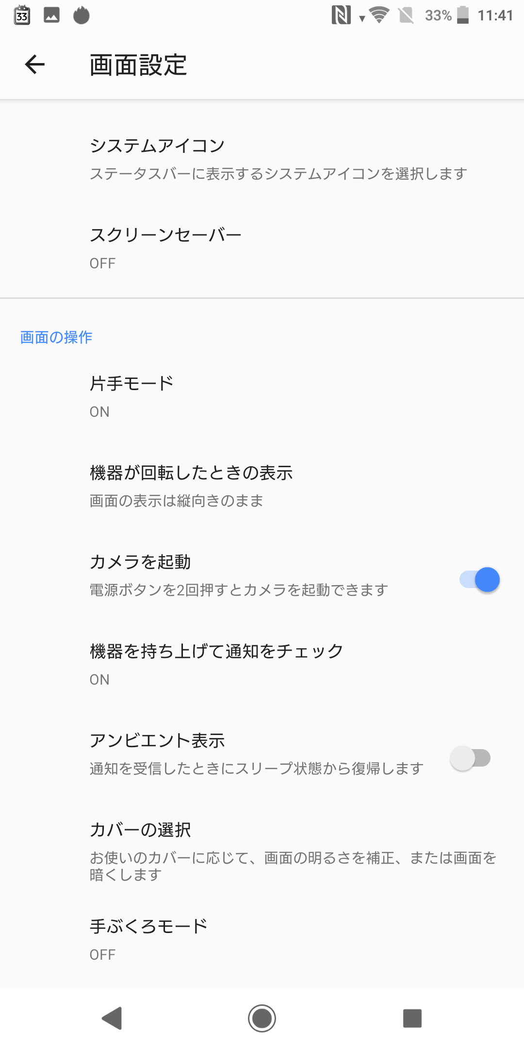 あと画面ダブルタップはない、本体をポケットなりなんなりから持ち上げてみる動作をしたときに画面がついて通知を確認できる(壁紙なし真っ黒の上に通知画面)