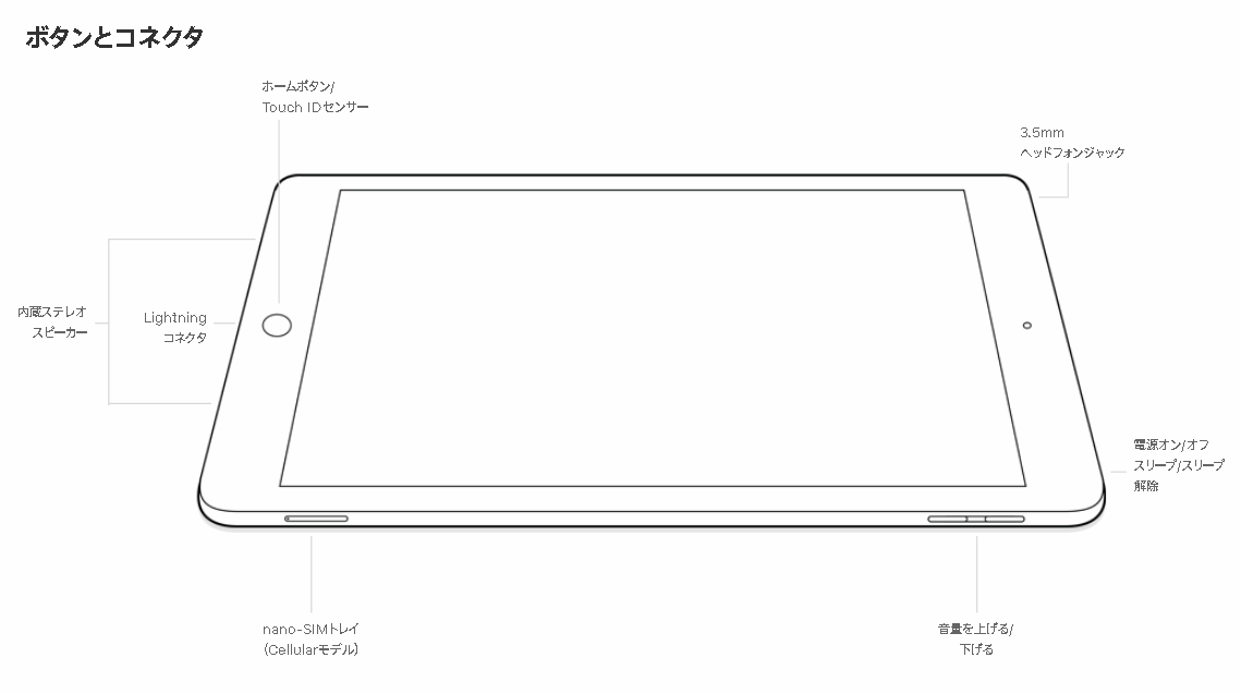 - ディスプレイ:9.7インチ(2048 × 1536・IPS・耐指紋性撥油コーティング)、Apple Pencil対応