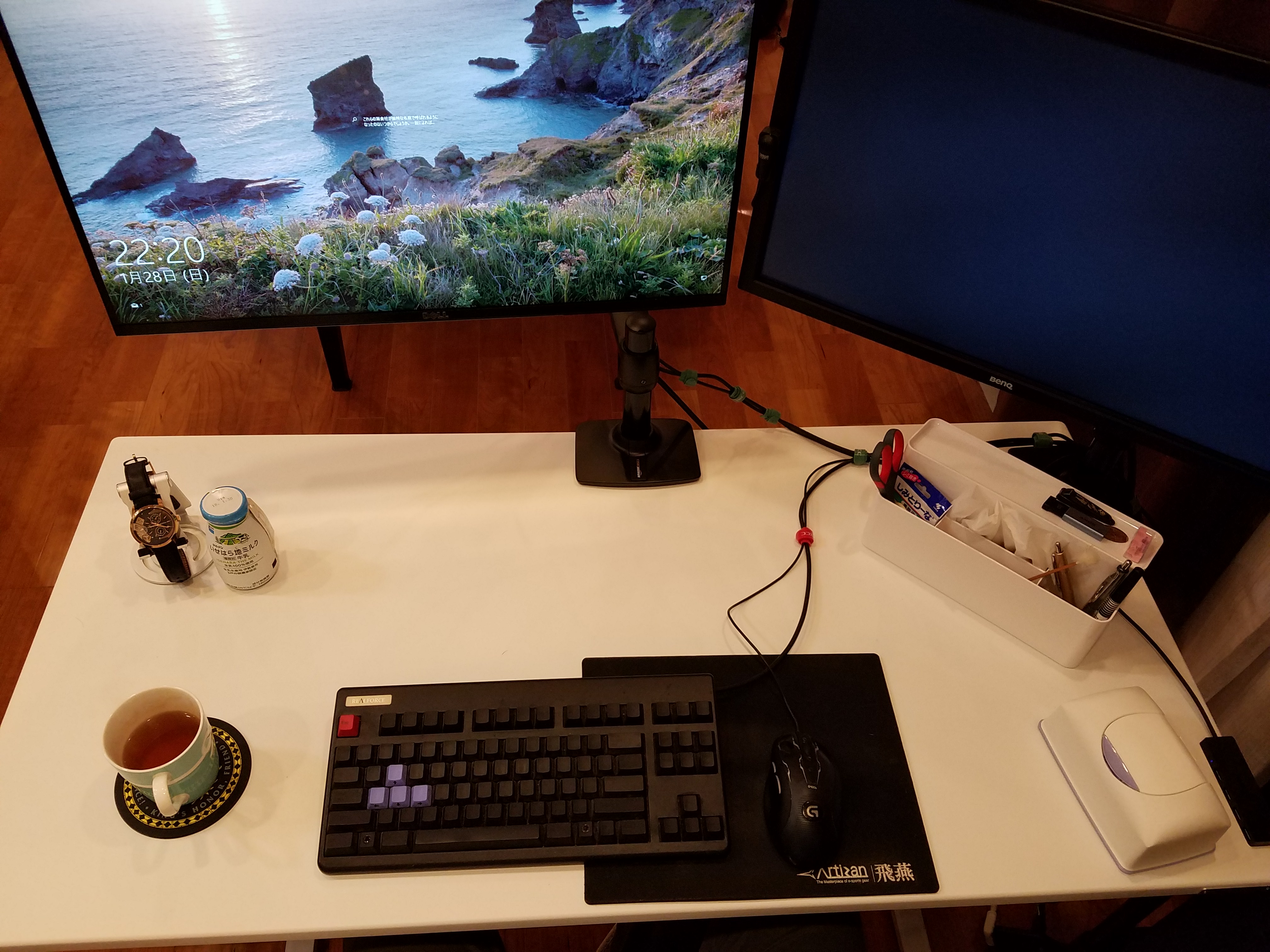 モニタサイズは正面左27インチ、右24です