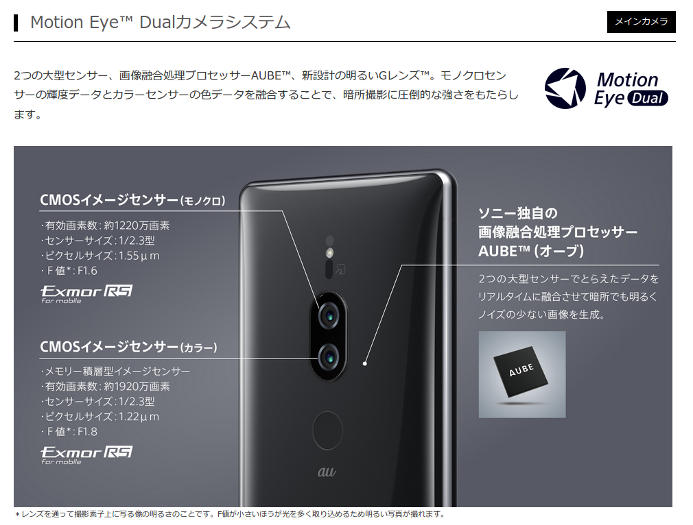 - 背面カメラ2:1220万画素(1/2.3型のモノクロ)
