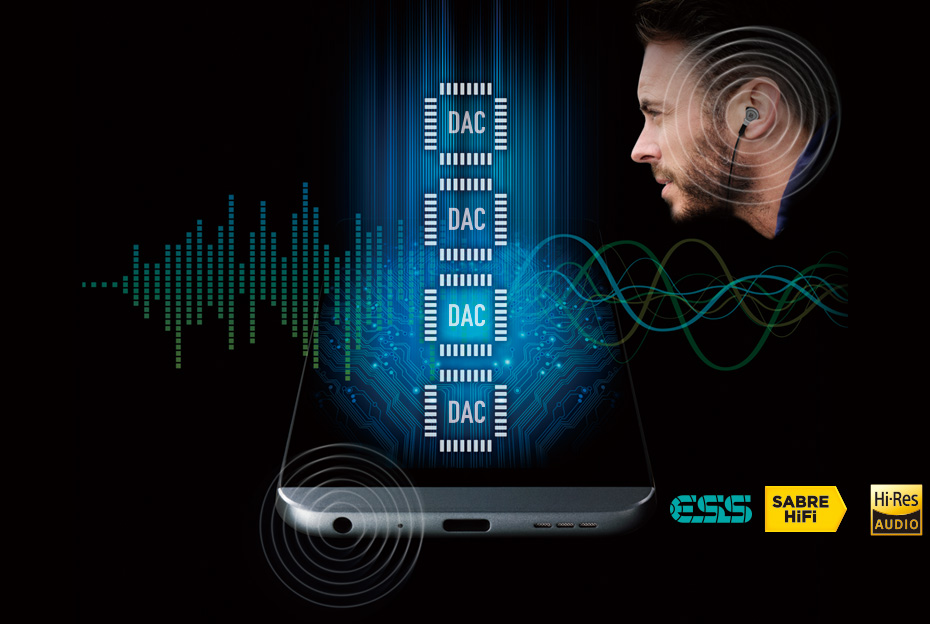 音楽をイヤホンに送る際、デジタル信号からアナログ信号に変換(D/A変換)する必要があり、その回路をDAC(Digital to Analog Converter)と呼ぶ。