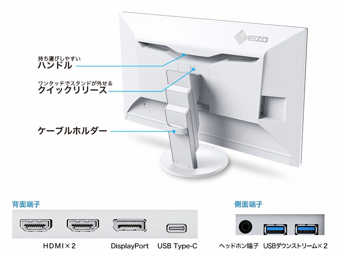 - 入力端子:USB Type-C、Displayport、HDMI×2
