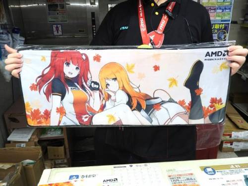 マウスパッドは幅77cmで厚みのある本格派で、AMDのオリジナルキャラクターであるRyfaちゃん(左)とZENKAちゃん(右)がデザインされている。