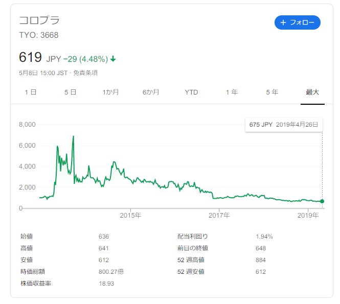 コロプラ 第2四半期累計(18年10月~19年3月)の連結決算