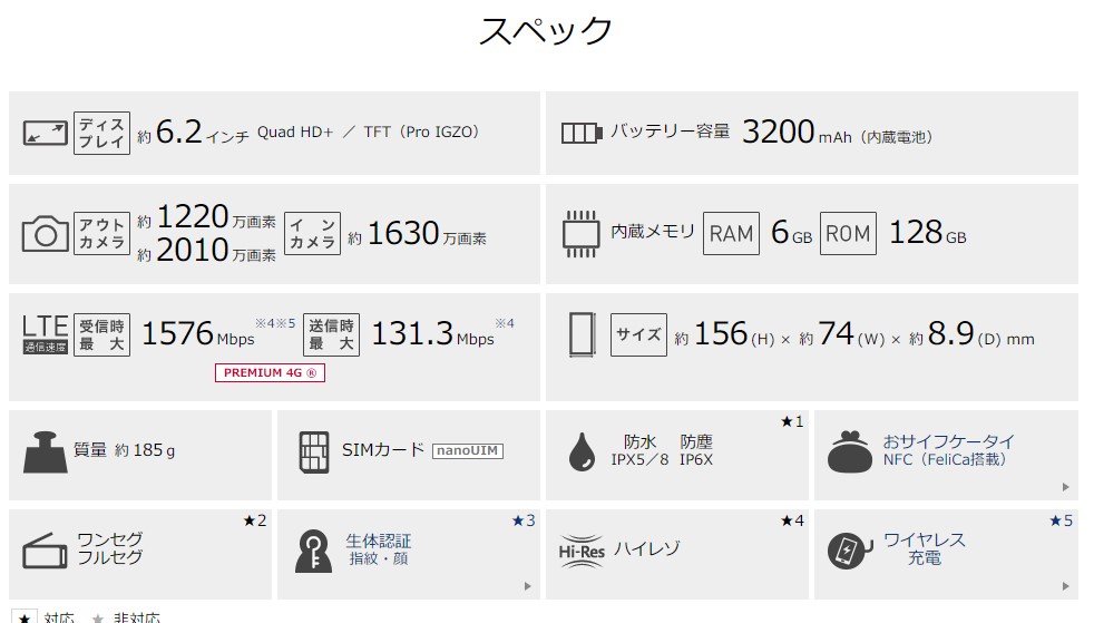 - その他:指紋リーダー(前面下部)、顔認証、ワンセグ・フルセグ、おサイフケータイ