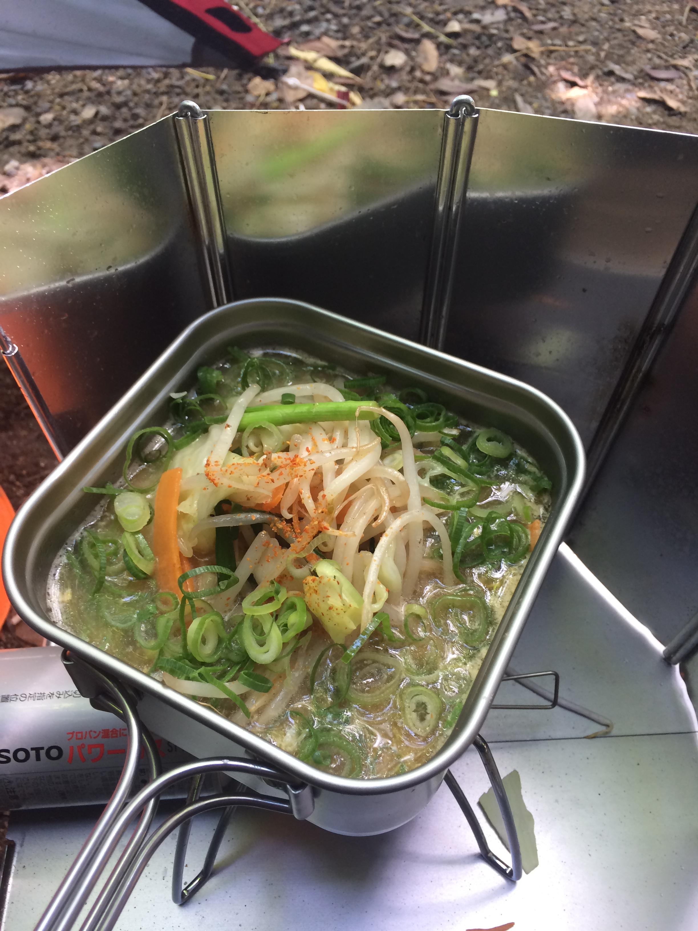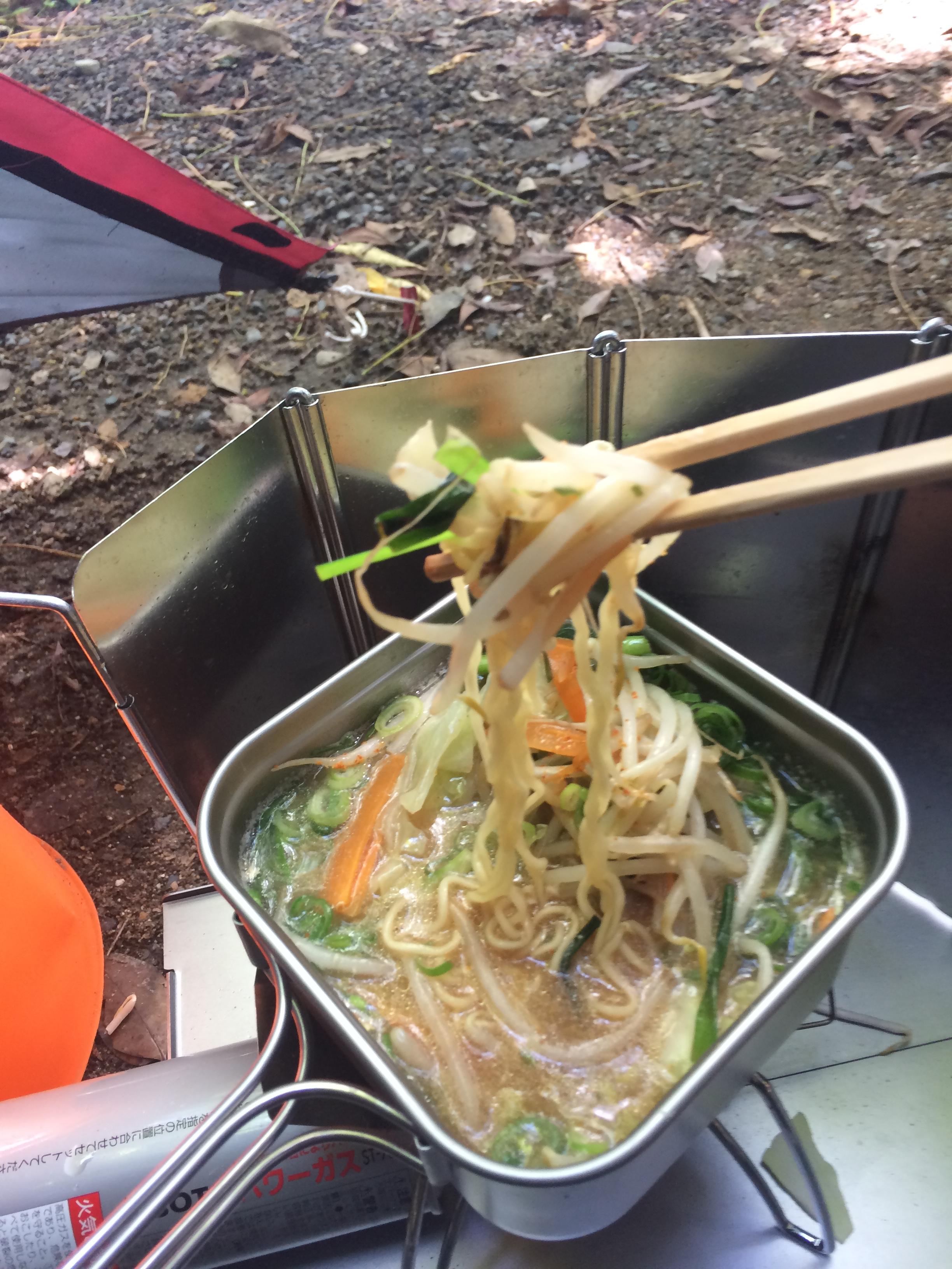 おお!やはり昼にテントは王道 レトルトカレーでめ最悪カレーヌードルでも雰囲気出るだろう