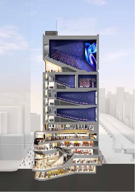IMAXレーザー/GTテクノロジーを採用するシアター12の縦横最大値18,910×25,849mmは、常設の商業用映画館で日本最大としている。