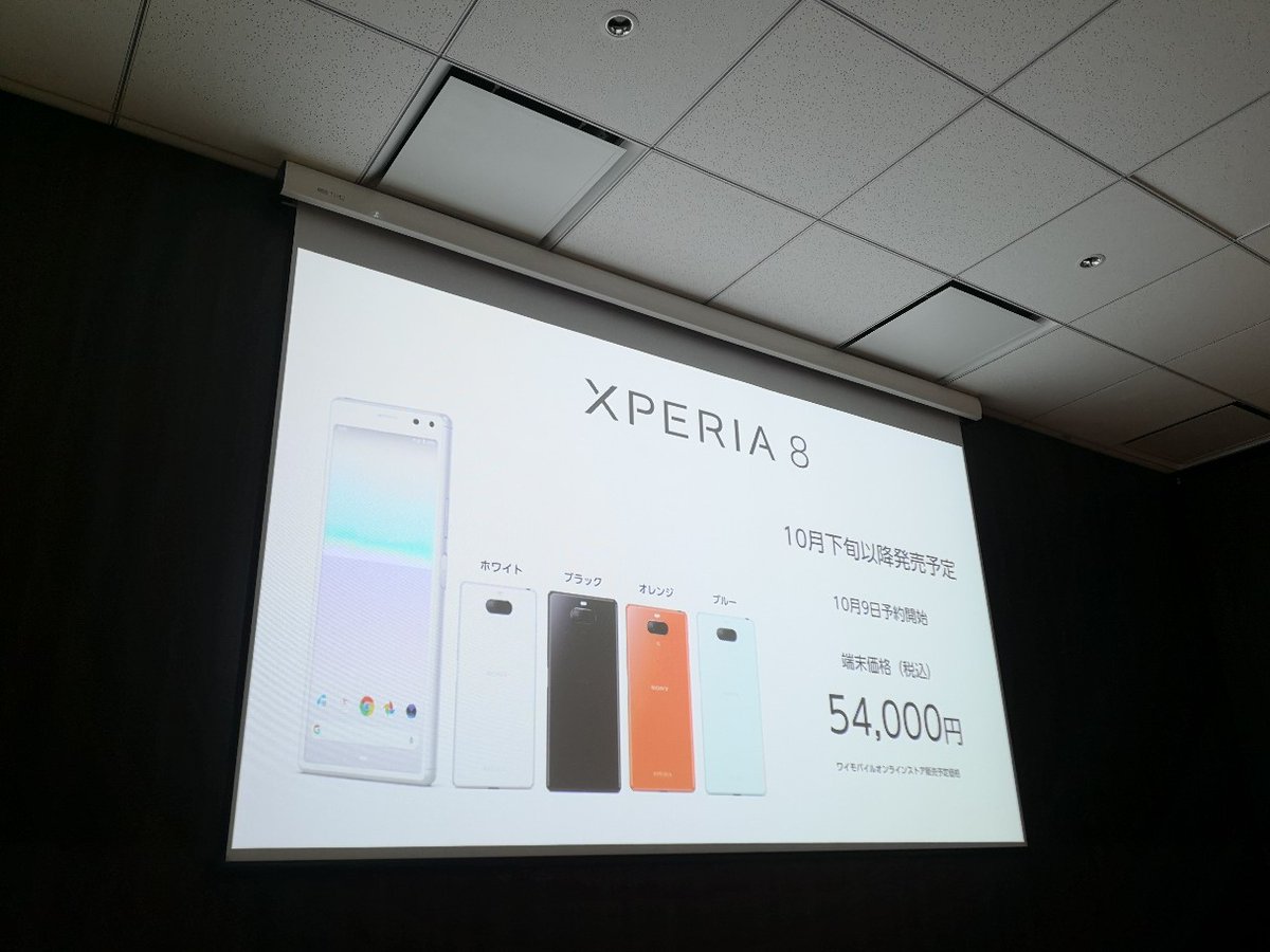 Y!mobileは10月7日、ソニーモバイル製のAndroidスマートフォン「Xperia 8」を10月下旬以降に発売すると発表しました。端末の価格は54,000円(税込)。