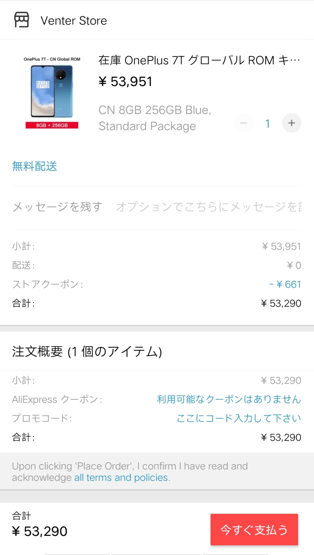 aliで7T買おうと思ったけど持ってるクレカ上手く決済できなくて公式で買っちまった 少し高いけどまあいいや