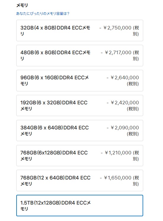 うちの会社のある処理に特化したサーバがメモリ1TBあったけど