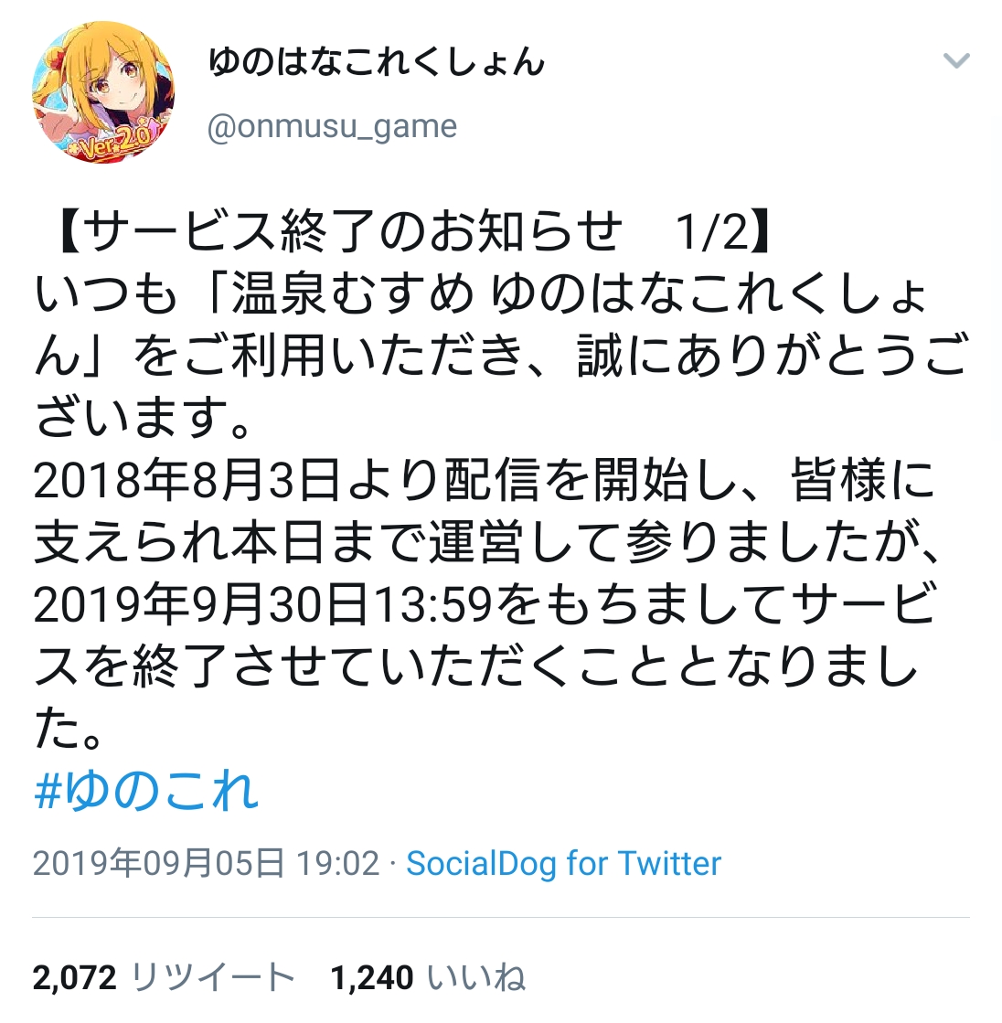 ゆのこれはそこそこの人気あるメディアミックスのなかのアプリが死んだだけだからな