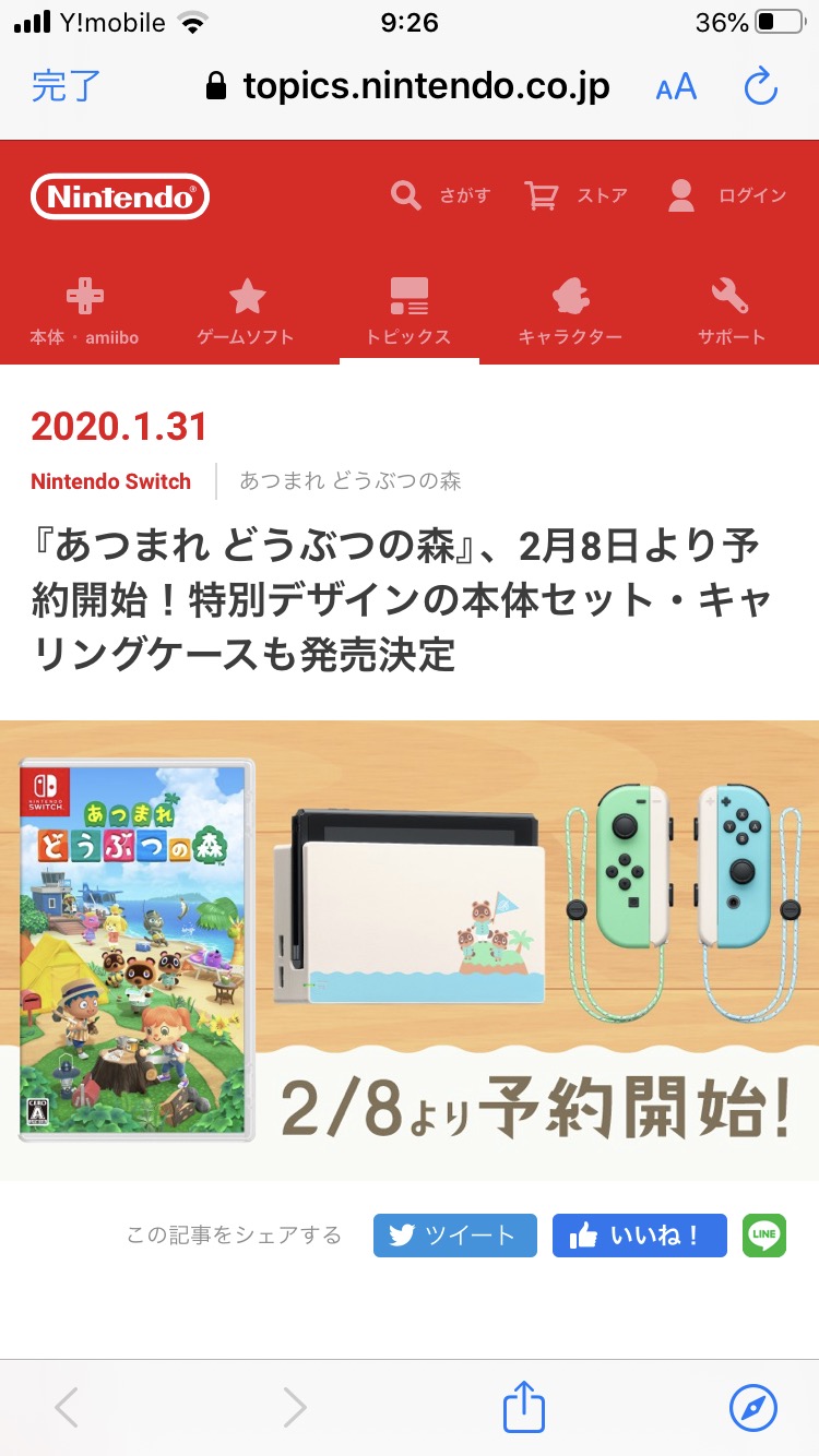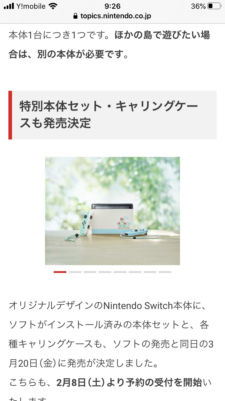 [任天堂HP]「Nintendo Switch あつまれ どうぶつの森セット・キャリングケース」のページを公開しました。2月8日(土)より予約受付を開始します。