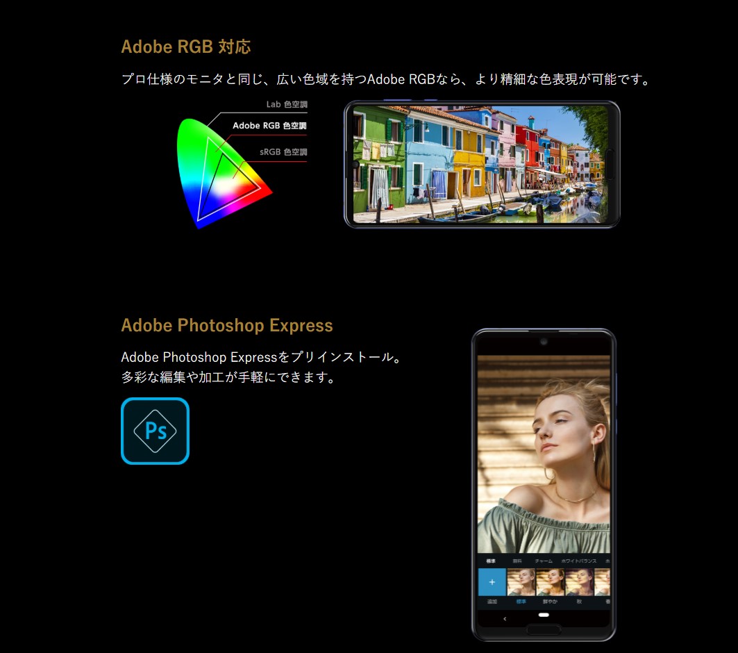 - その他:おサイフケータイ、IP68の防塵・防水、指紋リーダー、顔認証、エモパー、ワンセグ・フルセグ