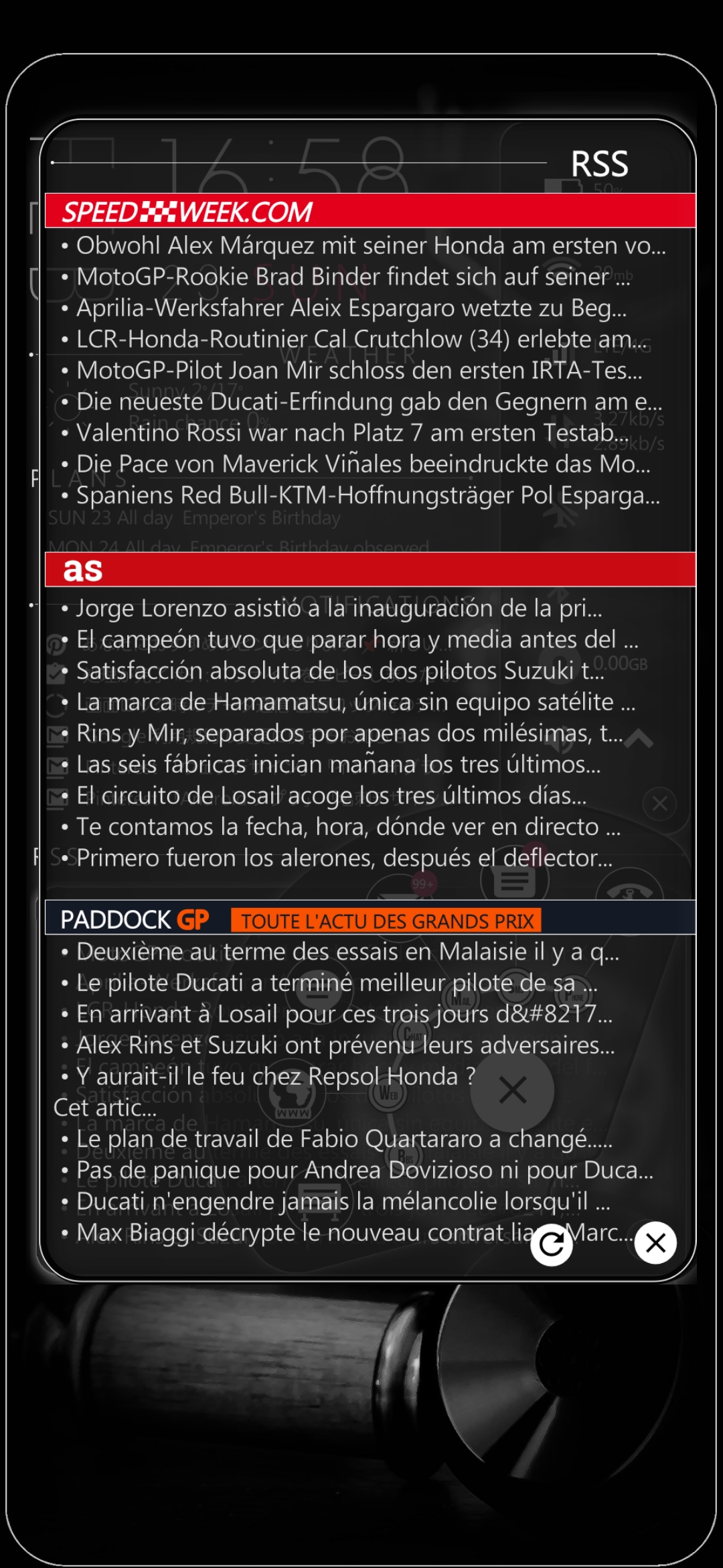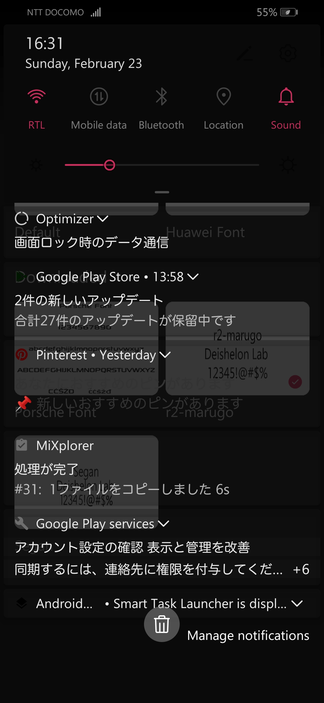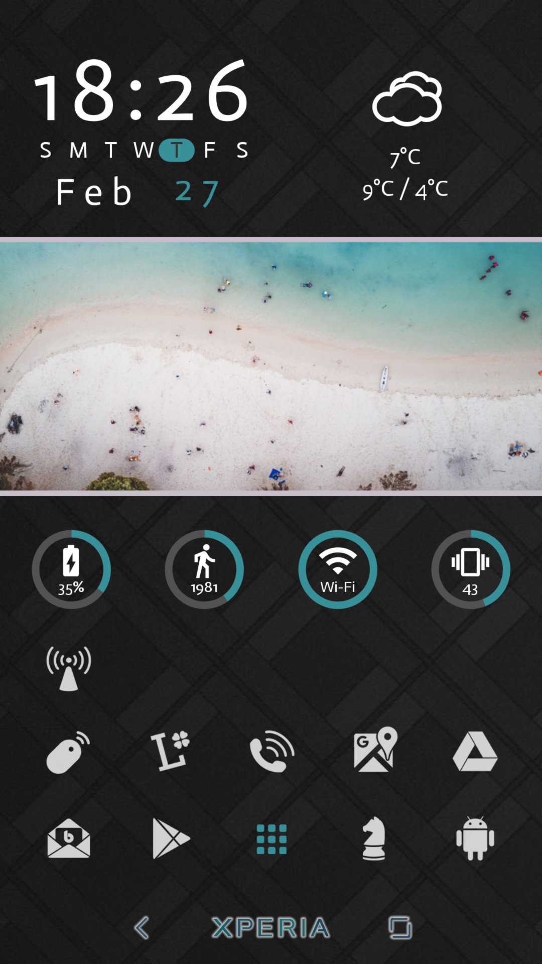 ホームはKWGTのウィジェットでアプリランチャー、各種インフォメーション、RSSの表示の切り替えが出来るように、その他はHuaweiのEMUIのテーマ機能で作成