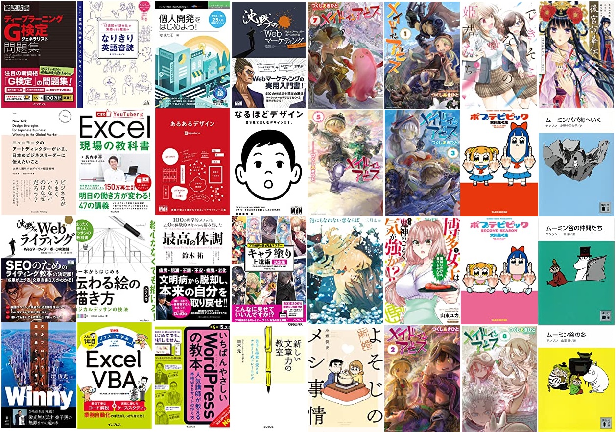 「【最大50%OFF】2000冊以上対象 インプレスグループ10社合同フェア」は、「Winny 天才プログラマー金子勇との7年半」や「【ダウンロード特典あり】プロ絵師の技を完全マスター キャラ塗り上達術 決定版 CLIP STUDIO PAINT PRO/EX 対応」、「あるあるデザイン」、「『山と食欲と私』公式 日々野鮎美(+なかまたち)の山ごはんレシピ」などが対象になっています。欲しい本がある方はこの機会にぜひどうぞ。