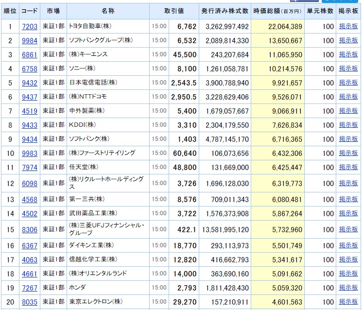 時価総額上位で伸びそうなの、むしろキーエンスとソニーしかないだろw