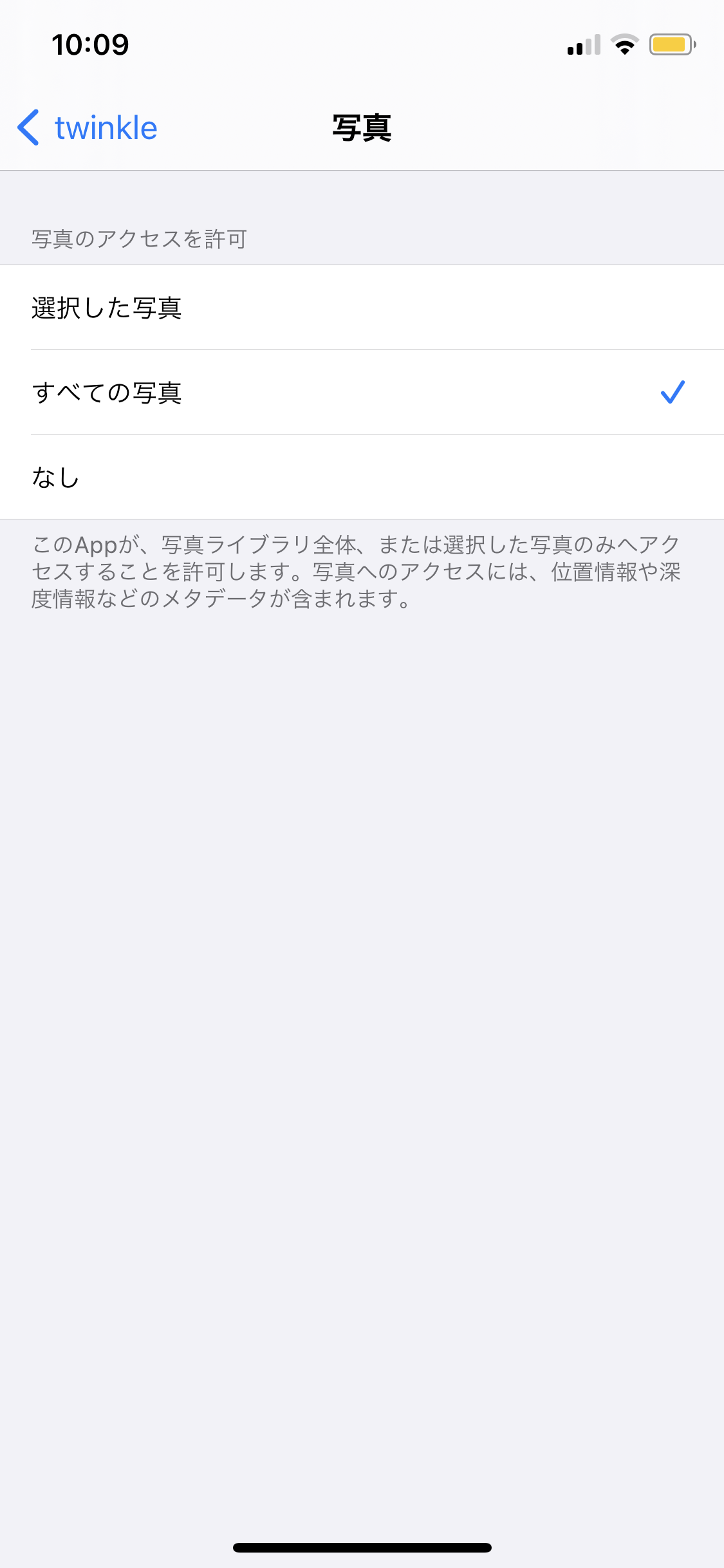 全ての写真へのアクセスを許可や