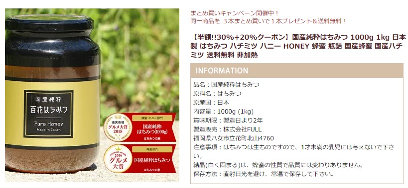 国産蜂蜜半額なんてしょっちゅうやってるよな