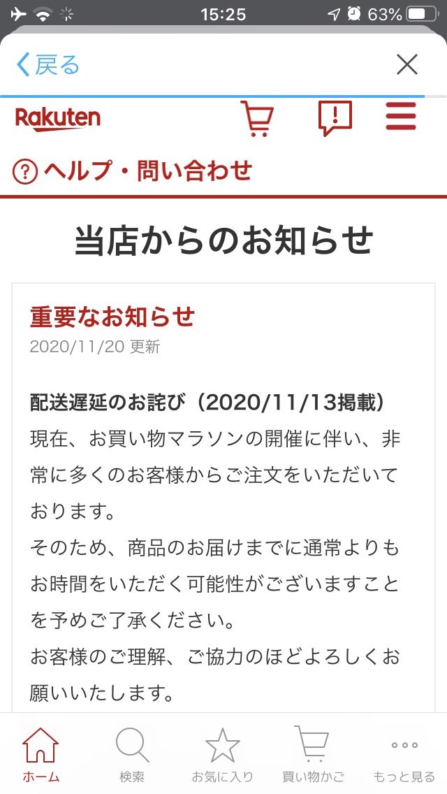 配送遅延のお詫び(2020/11/13掲載)