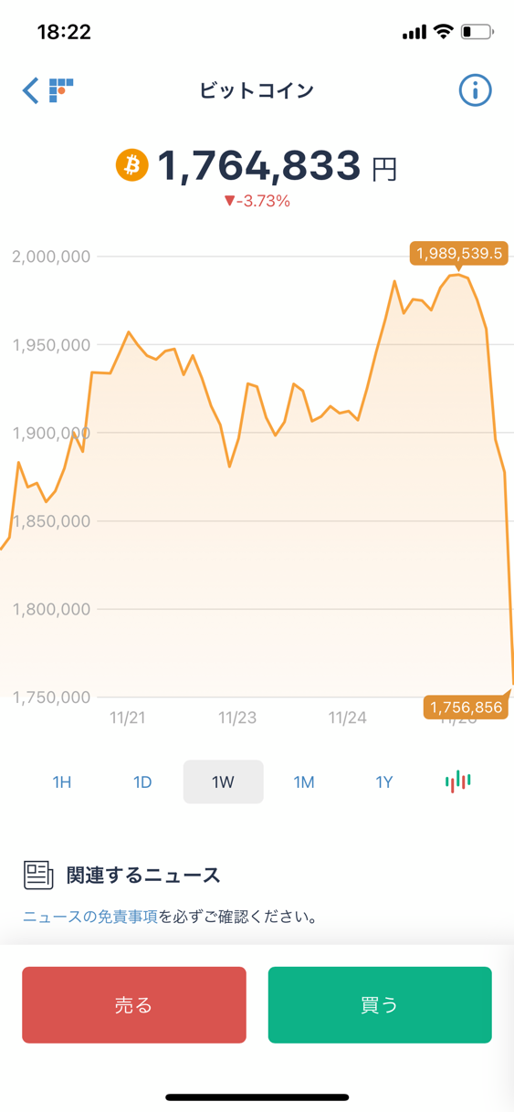 ワイビットコイン75万円のときに買ったんやけど