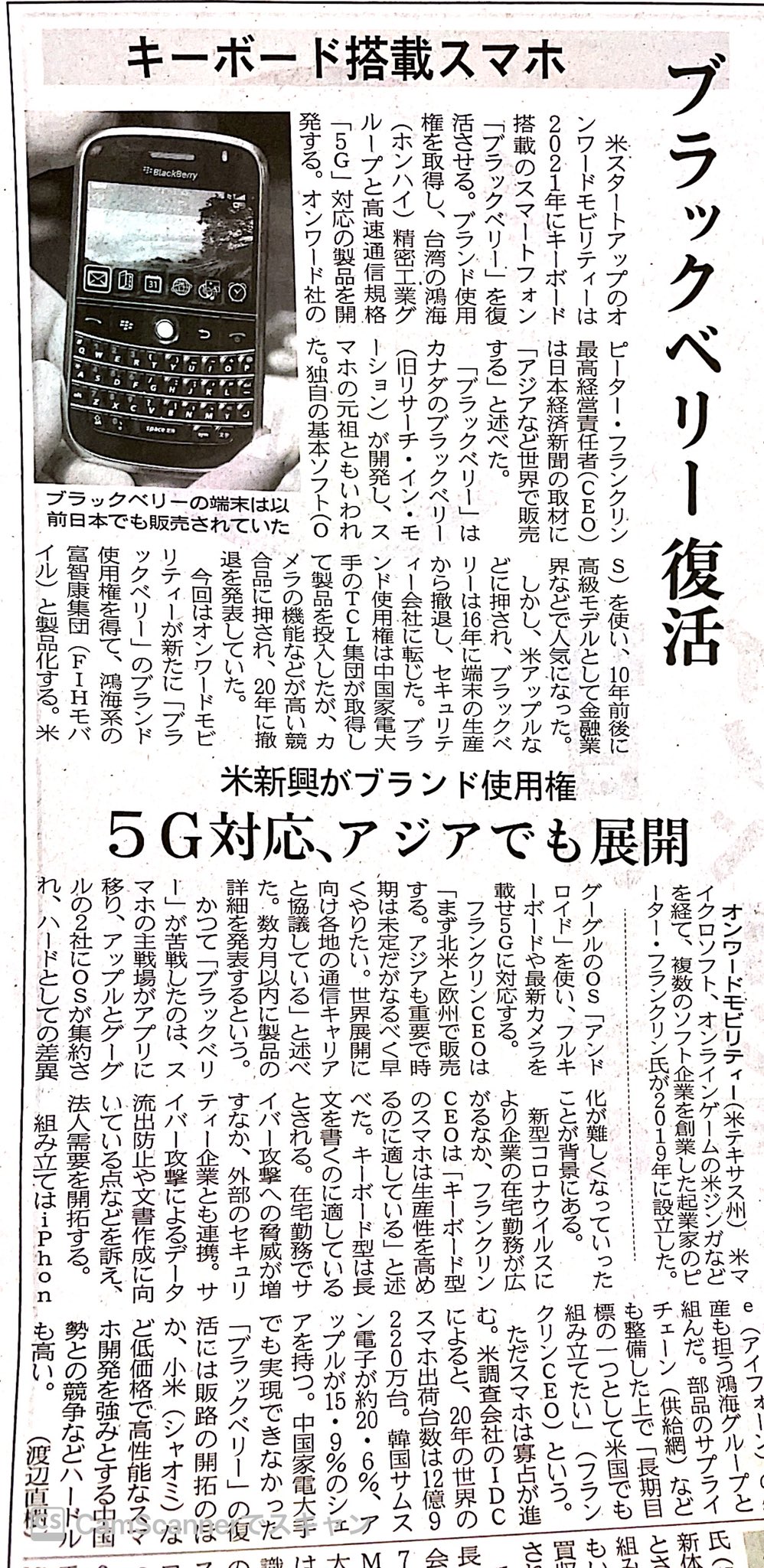 今朝の日経新聞にブラックベリー復活って見出しでそこそこ大きな記事あるね