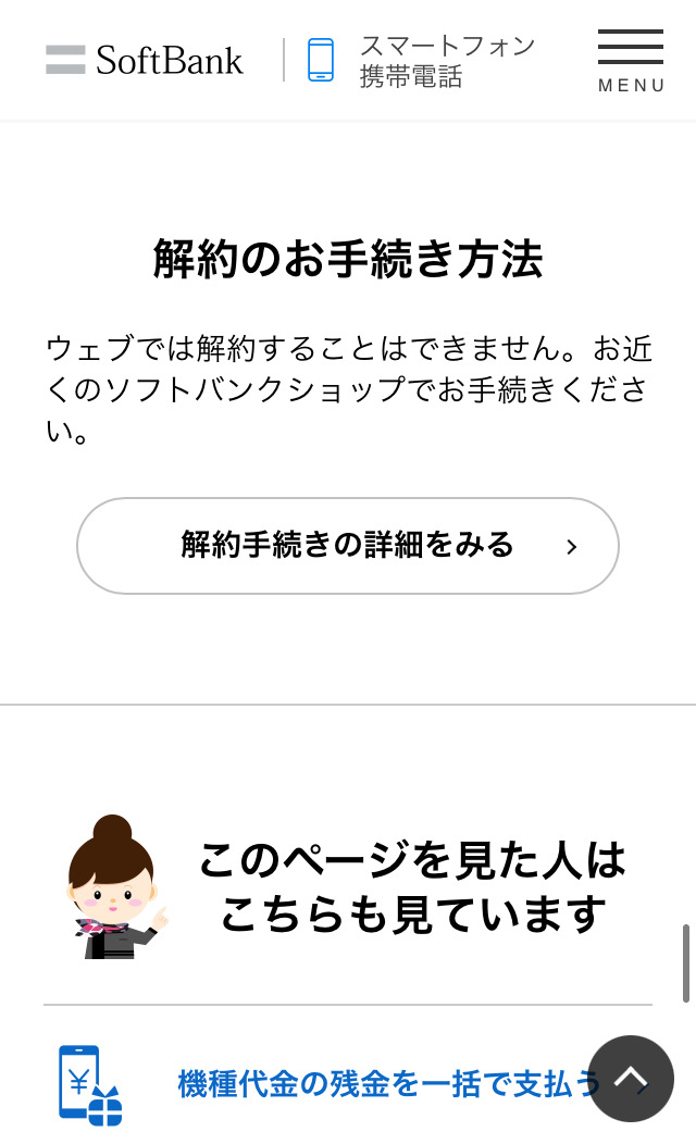 ソフトバンクはもともと解約ページが存在しませんでした。