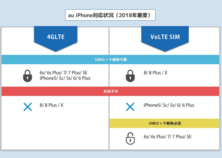 対応機種についてauに問い合わせたとき、iPhoneはモデルごとの対応でvolteに対応したすべての端末を対象としているわけではないと説明された