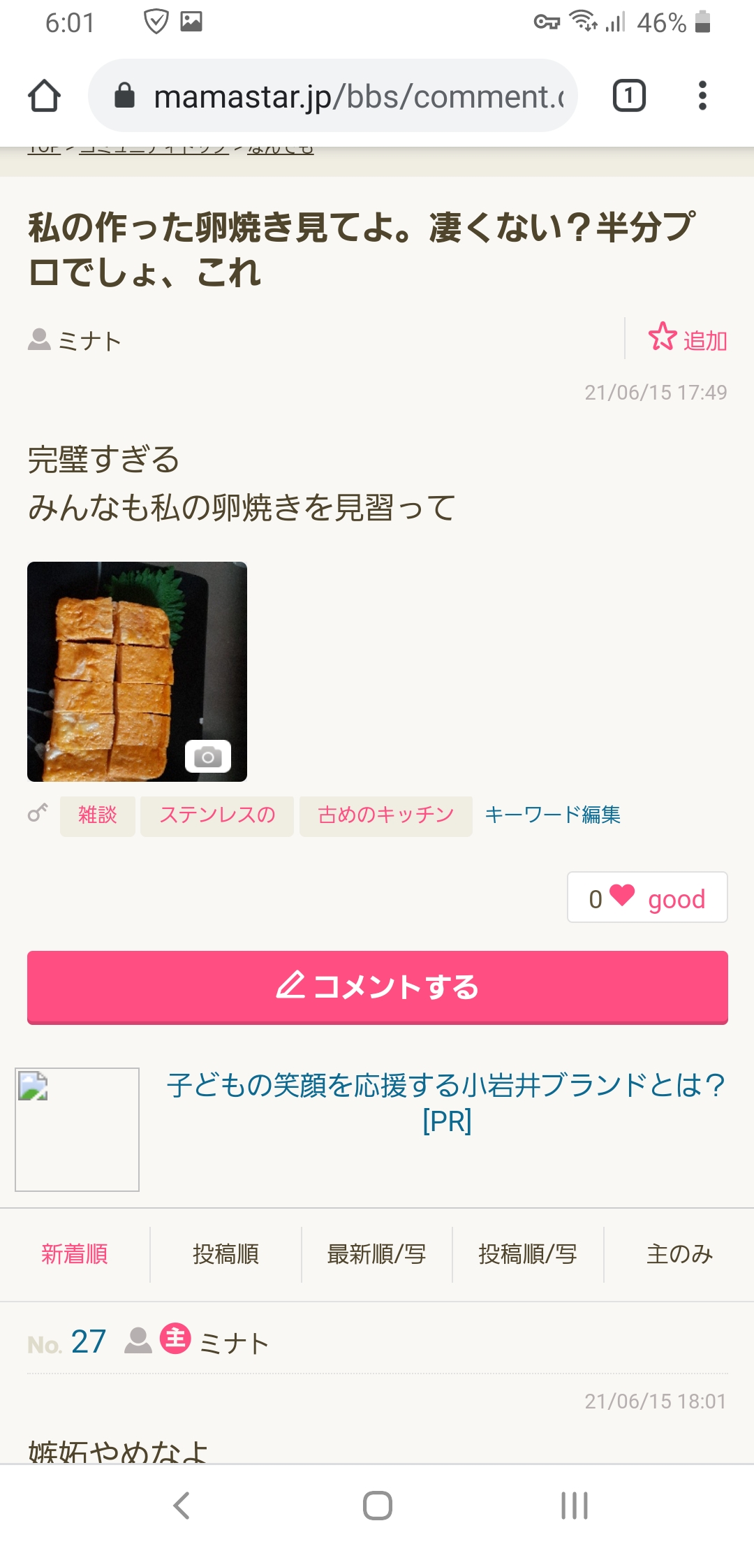 ママスタで見せれば女が作ったと思われて大したことないと思われるのは当然