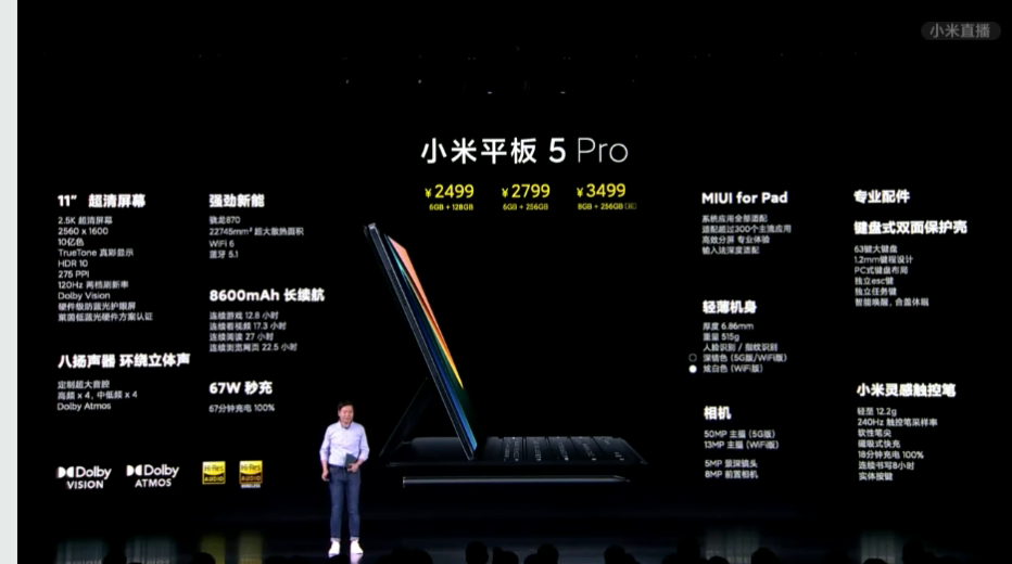 中国のメーカーXiaomi(小米科技)は8月10日、11インチのAndroidタブレット「Mi Pad 5」「Mi Pad 5 Pro」を中国で発表しました。