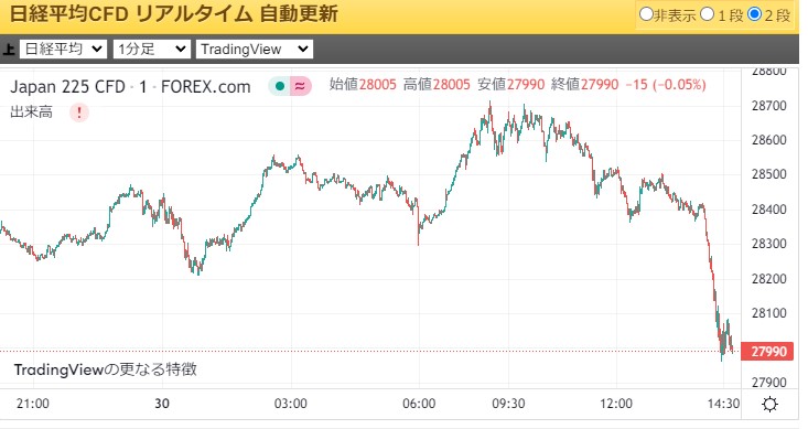 ダウCFDが垂直落下(´・ω・`)