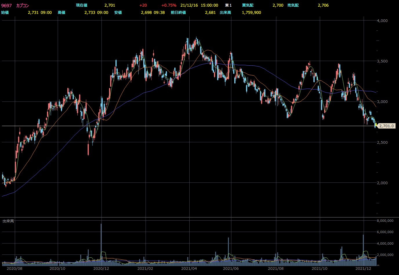 カプコンは去年9月以来の底抜けしてるな