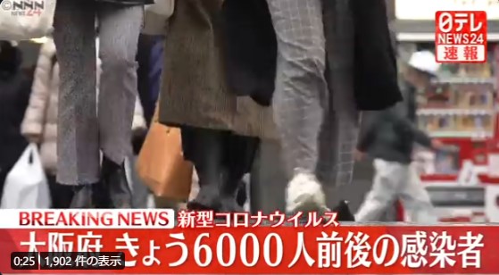 大阪府は18日、新型コロナウイルスの感染者が新たに5396人確認されたと発表した。過去最多だった16日の3760人を大きく上回った。