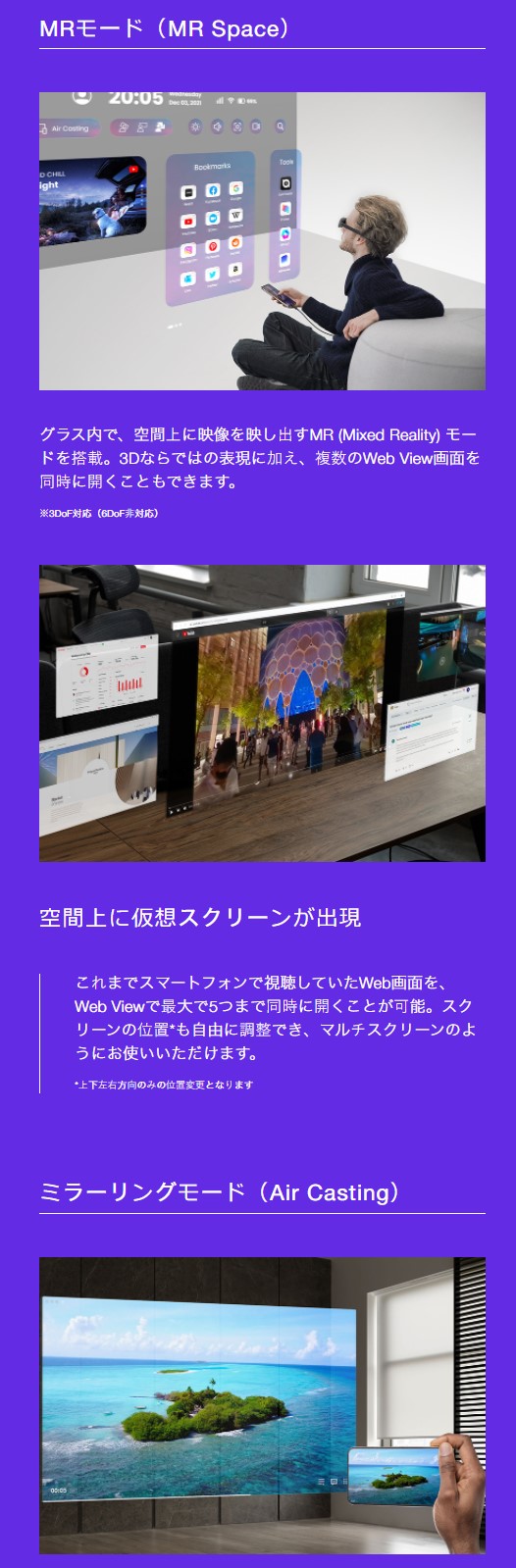 - ARグラス内の仮想空間上で複数のコンテンツを映し出す「MR Space」