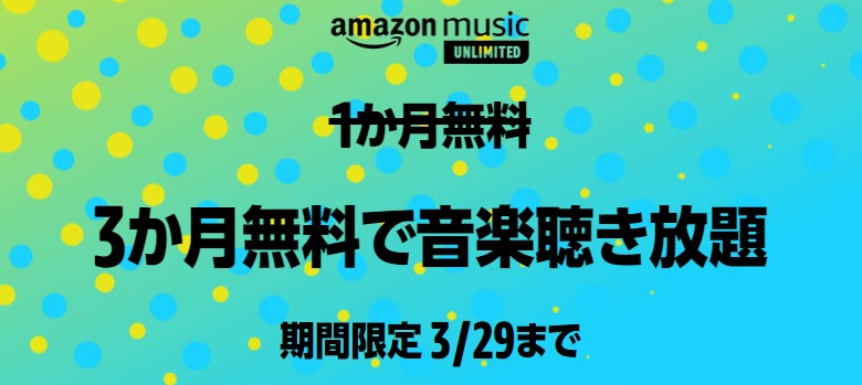 Amazon Music Unlimited 3ヵ月無料キャンペーン(3/29まで)