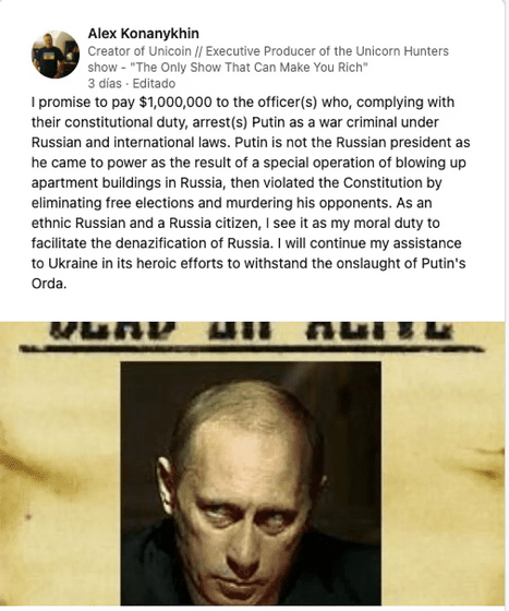 ロシアの資産家がプーチン大統領に1億円の懸賞金、「生死は不問」
