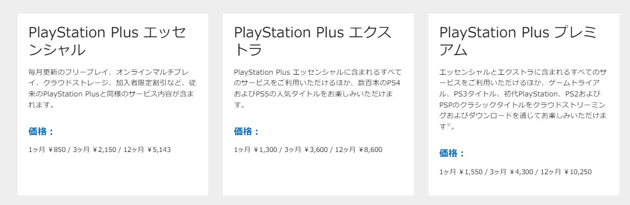 今までのとほぼ同じプランとPS4.5のゲームができるプランとPS1.2.3.4.5.PSPができるプランの3つ