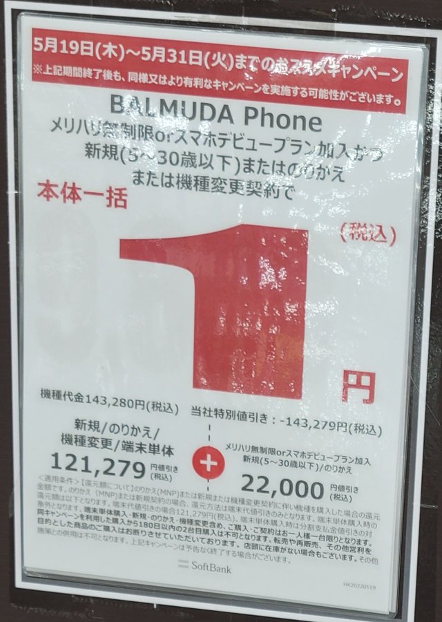 バルミューダフォン一括1円ってなんなんだよ、11万で買った俺がアホみたい