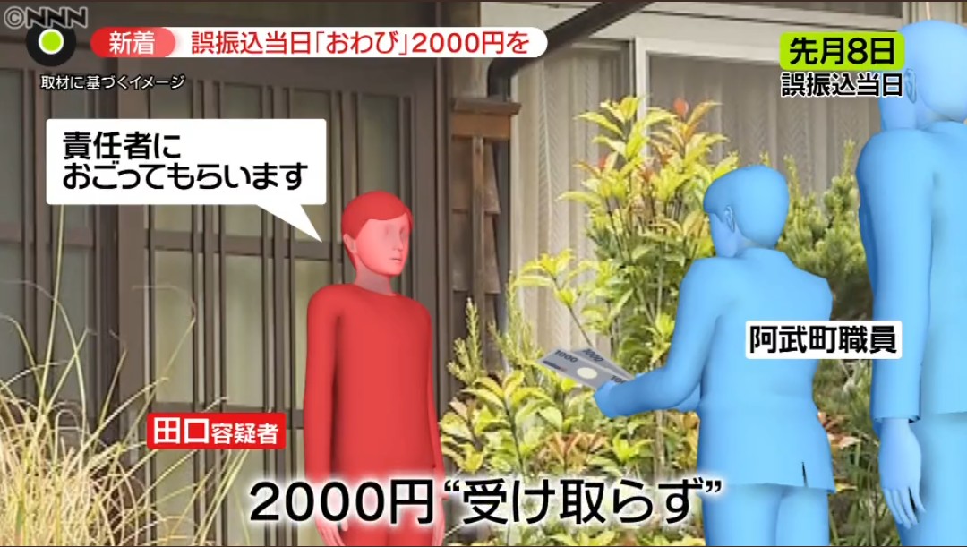 #新型コロナ #給付金 として4630万円が誤って振り込まれた事件。その当日、町の担当者が田口容疑者にお詫びとして2000円を渡そうとしていたことが、新たに分かりました。… https://t.co/vvSTTgsKGf