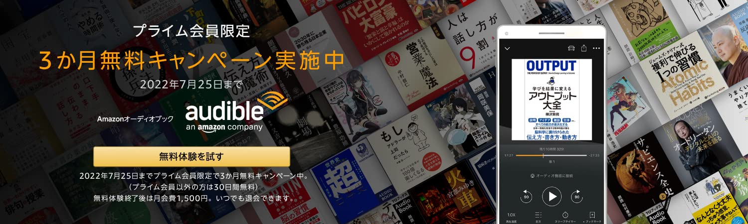 オーディオブック聴き放題「Audible」3ヶ月無料 プライム会員限定(7/25まで)