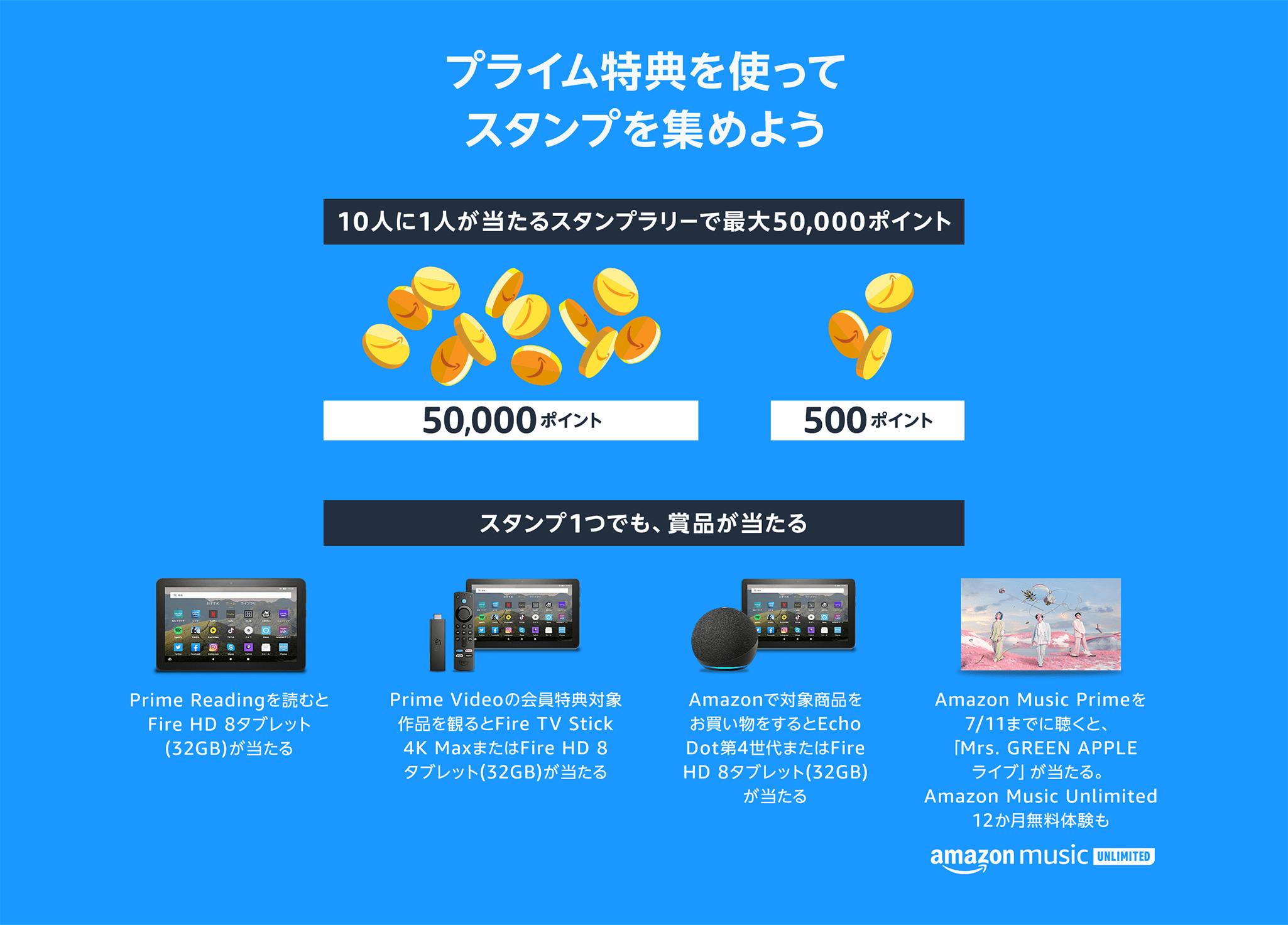 最大50000ポイントやFireタブレット、FireTV Stick、Echo Dotが当たる