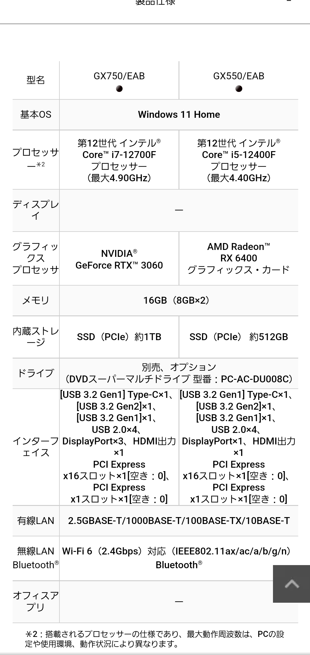店頭モデルは「PC-GX750」と「PC-GX550」の2種類